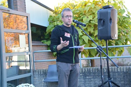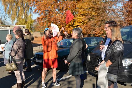 Er was veel volk vanmiddag voor de vernissage van de 15de editie van Artikel 27. Op deze zonovergoten, zachte herfstdag kon het openingsgebeuren met fairtradedrink in ideale omstandigheden op de parking van het oude zwembad plaatsvinden. Vanop de toegangstrap werden iedereen welkom geheten door Herwig Nulens van Artikel 27 waarna schepen van cultuur Marleen Hoydonckx de loftrompet mocht afsteken aan het adres van de organisatoren die er jaar na naar in slagen om een prachtige kunsttentoonstelling in elkaar te boksen, en waarvan de opbrengst dan ook nog eens naar goede doelen in het zuiden gaat. En het gaat natuurlijk om een evenement in het zwembad, dus mocht een badmeester alles in goede banen leiden ... Artikel 27 kan op de drie locaties bezocht worden tot en met zondag 22 november, de dag van de finissage.23186