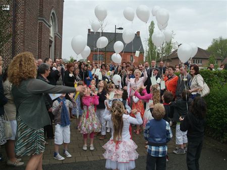 In Eversel deden 19 kinderen hun eerste communie. Ze werden daarvoor begeleiden door juf Chantal, juf An en Denise en de mis werd opgedragen door pater Frans.(foto's Rudi Rykers) 10459