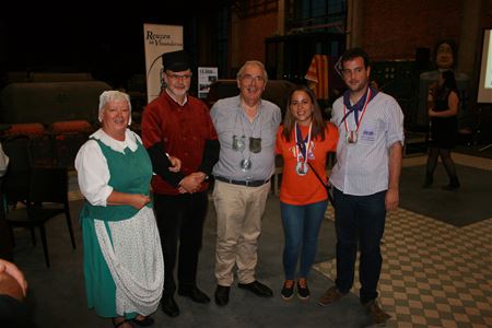 130 personen hebben zaterdagavond in ZLDR Luchtfabriek het Limburgse reuzenkapittel bijgewoond. Onder hen 27 Catalanen van de Reuzengilde Castellbisbal. Na de speech van nationaal ondervoorzitter van Reuzen in Vlaanderen, Marcel Dumon, zijn 7 mensen geridderd tot Commandeur Honoris Causa van de Reuzen in Vlaanderen. Daarbij heel wat bekenden: Leen Gos, Leen Roels en Lidia Reuling van MijnErfgoed, Simonne Janssens-Vanoppen van het 11 juli-Comité en Guido Willems, auteur van het boek Reuzen in Limburg en daarnaast Sergi Bonilla Sellarès en Sara Alegre Rodriguez de Guzman van Castellbisbal. Na de hymnen en de streekgerechten - friet stoofvlees en paella of wat had je gedacht - volgden optredens van onder meer de Harmonie Verenigde Vrienden, volkskunstgroep Di Landouwe Volkskunstgroep, De Akkermennekes en dans en muziek van de Catalanen. (meer foto's van Guido Aerts)34954