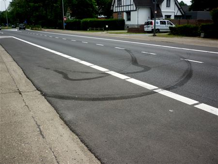 Buurtbewoners van de Koolmijnlaan zagen vanmorgen de sporen van het nachtelijke lawaai dat ze hadden opgevangen. Onwaarschijnlijke bandensporen op het wegdek en het bord met de snelheidsbeperking van 50 dat bijna symbolisch omver is gereden. (foto's Eric Lefèbvre)27612