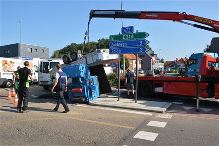 Een spektakulair verkeersongeval heeft vanmorgen meer dan een een uur voor verkeershinder gezorgd op Suska-Berg. Op de rotonde kantelde de aanhangwagen van een Nederlandse firma, met daarop onder meer een zware pomp. Het gevaarte versperde een deel van het kruispunt en de takelwerkzaamheden zorgden voor files op de vier wegen naar de rotonde. Tijdens het takelen kwam de aanhangwagen dan ook nog tegen de bestelwagen terecht waardoor de achterruiten sneuvelden en ook de carrosserie werd beschadigd.22406