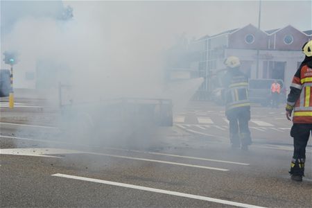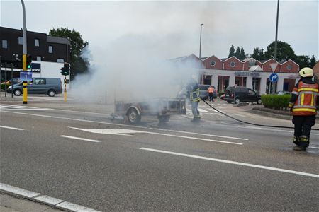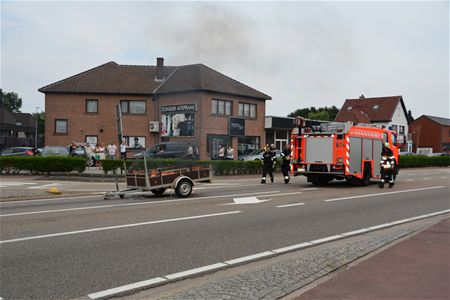 Aan de verkeerslichten in Boekt heeft kort voor vijf uur een aanhangwagen vuur gevat. Die kon tijdig van de auto losgekoppeld worden maar een zetel op de aanhangwagen stond snel in lichterlaaie en de vlammen sloegen enkele meters hoog. Toen de brandweer ter plaatse kwam, was de zetel al opgebrand. De politie moest het verkeer regelen want het was op dat ogenblik erg druk in de omgeving. (foto's Michiel Reynders en Ilka Bosmans)16626