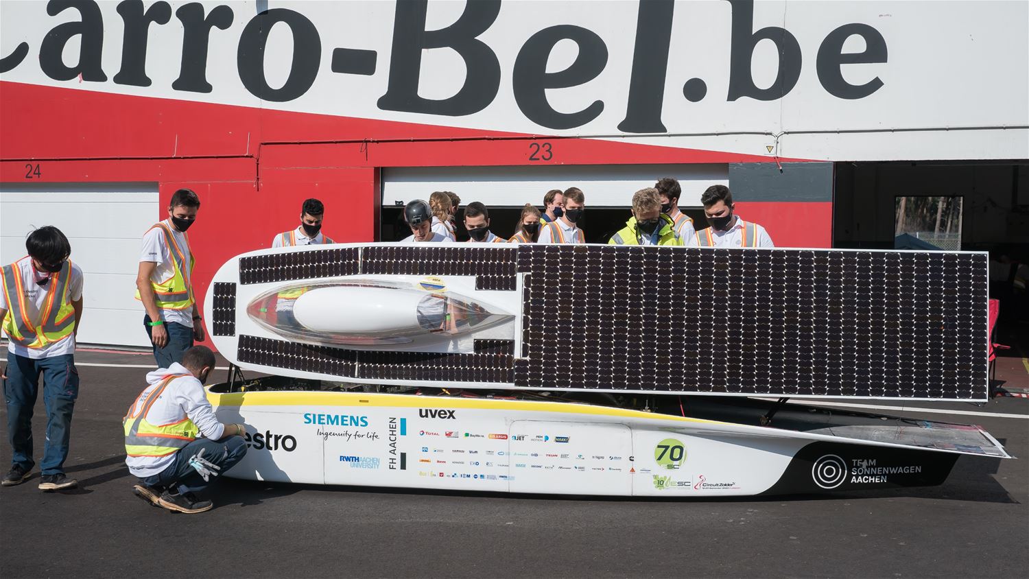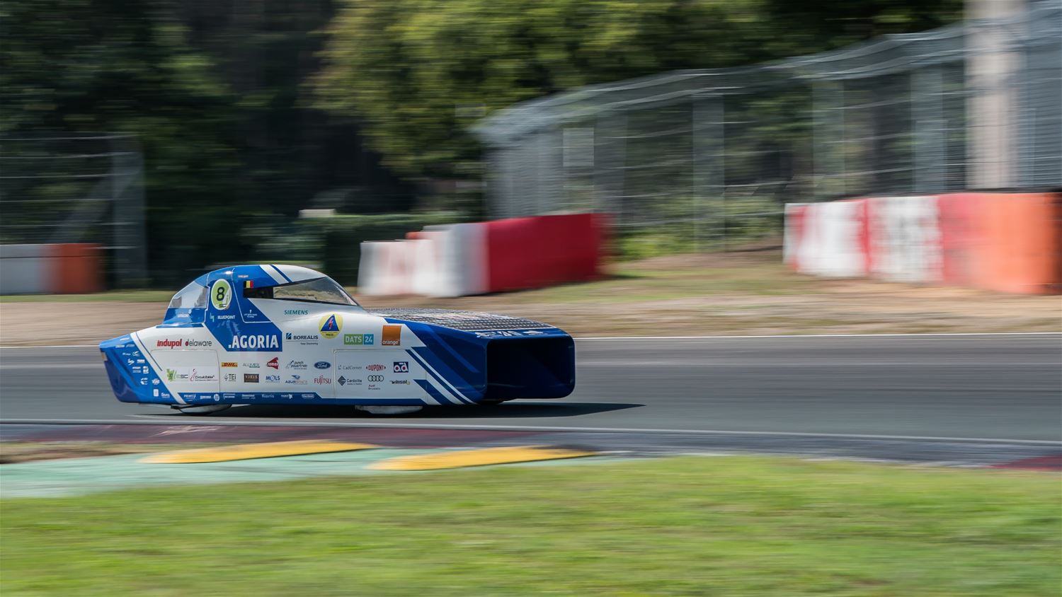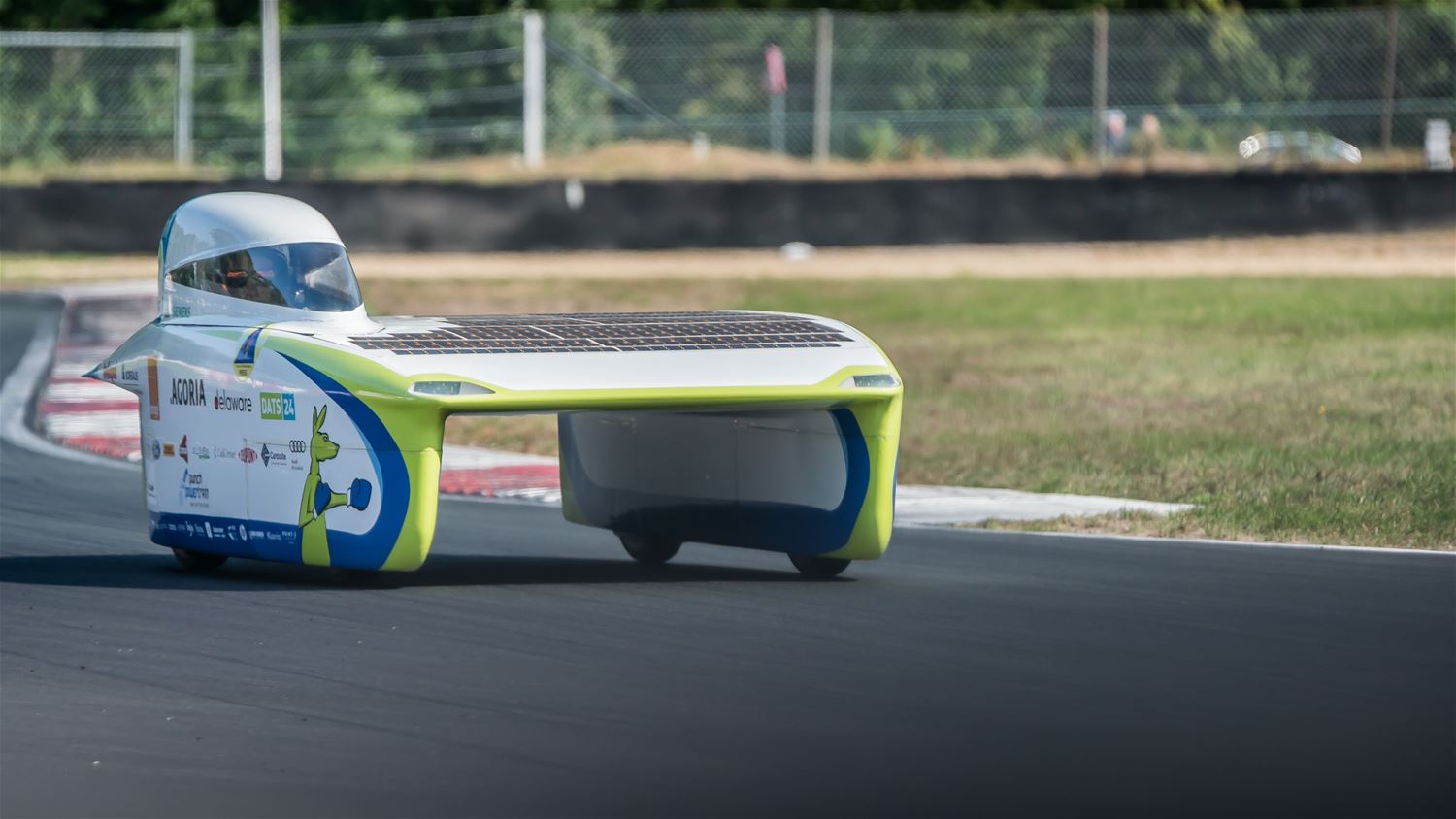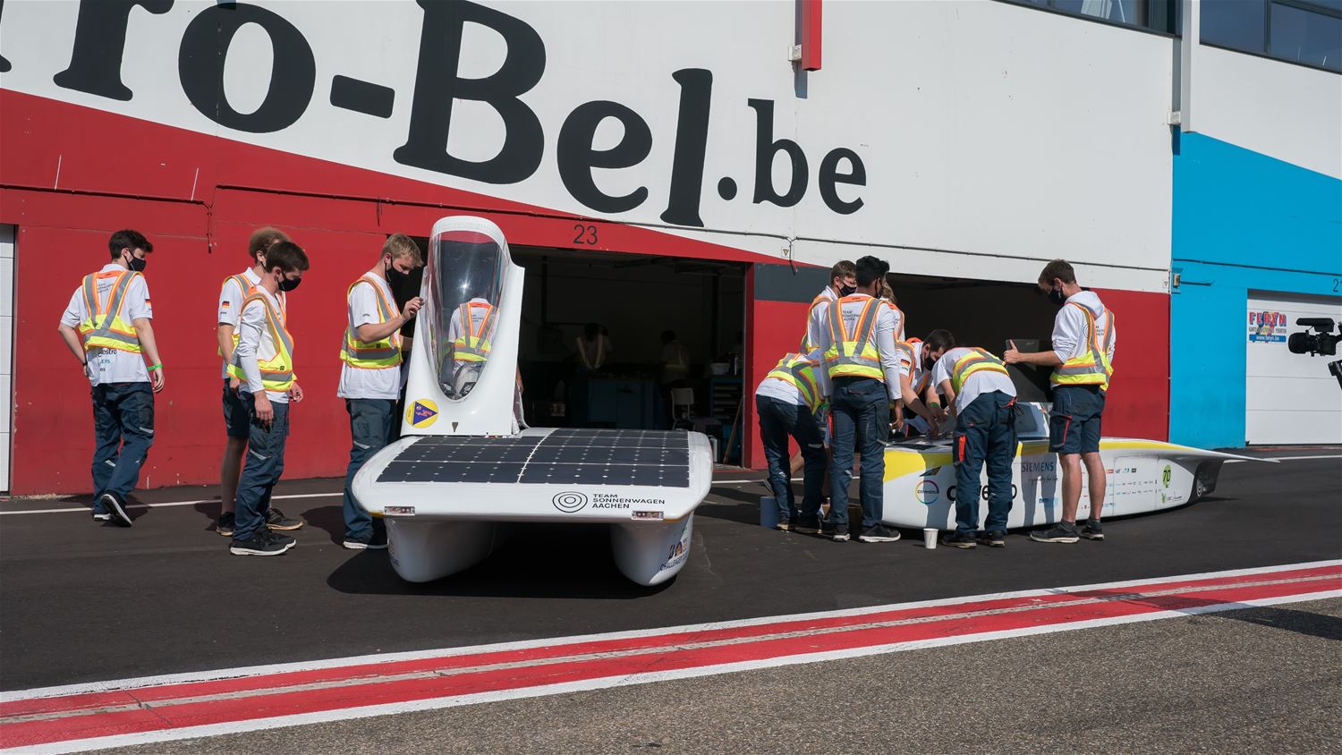 Deze namiddag heeft Vlaams minister van mobiliteit Lydia Peeters de start gegeven van de 24 uurs race voor zonnewagens op Circuit Zolder. Dat gebeurde heel gepast onder een stralende zon. De rijders namen een Le Mans start en gingen er meteen tegenaan. Vanavond reed het Belgische Agoria Solar Team met een stevige voorsprong aan de leiding, met 149 rondes. Dat waren er liefst 15 meer dan Top Dutch Solar Team en 24 meer dan Solar Team Twente. Afwachten of ze die bonus heel de nacht en ochtend door kunnen behouden. (foto's Dirk Dekens)