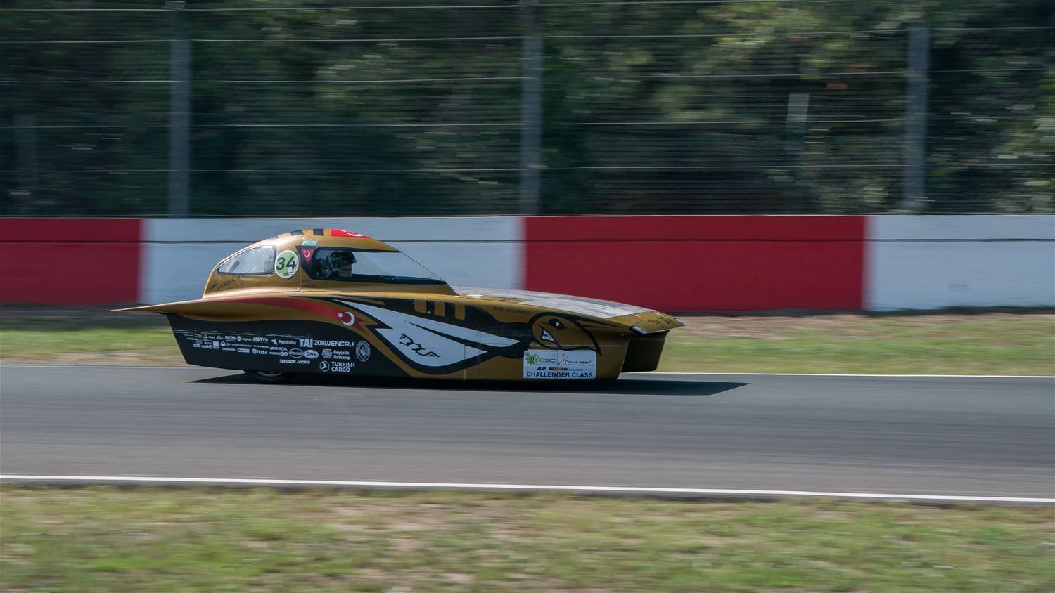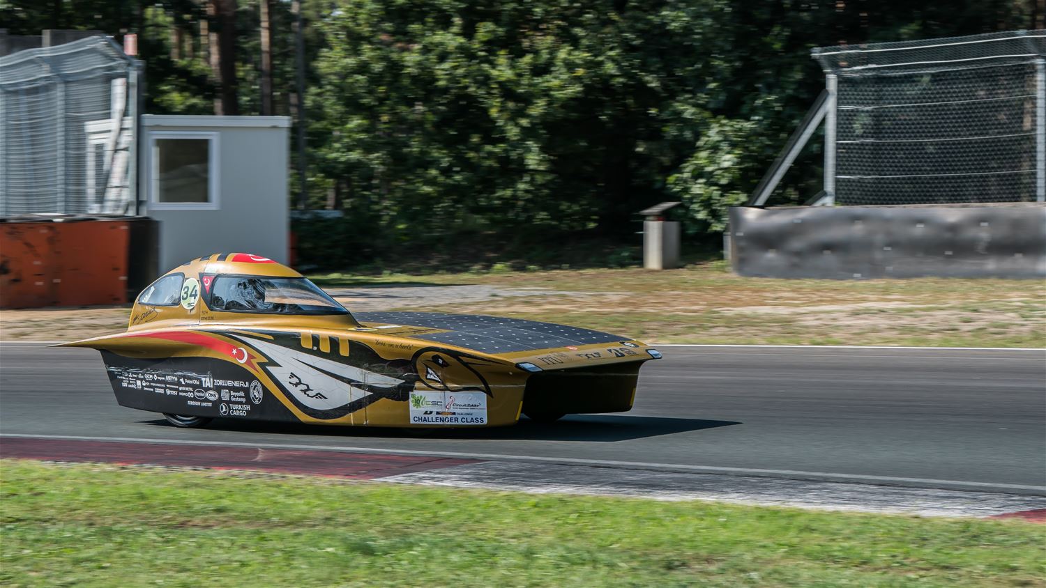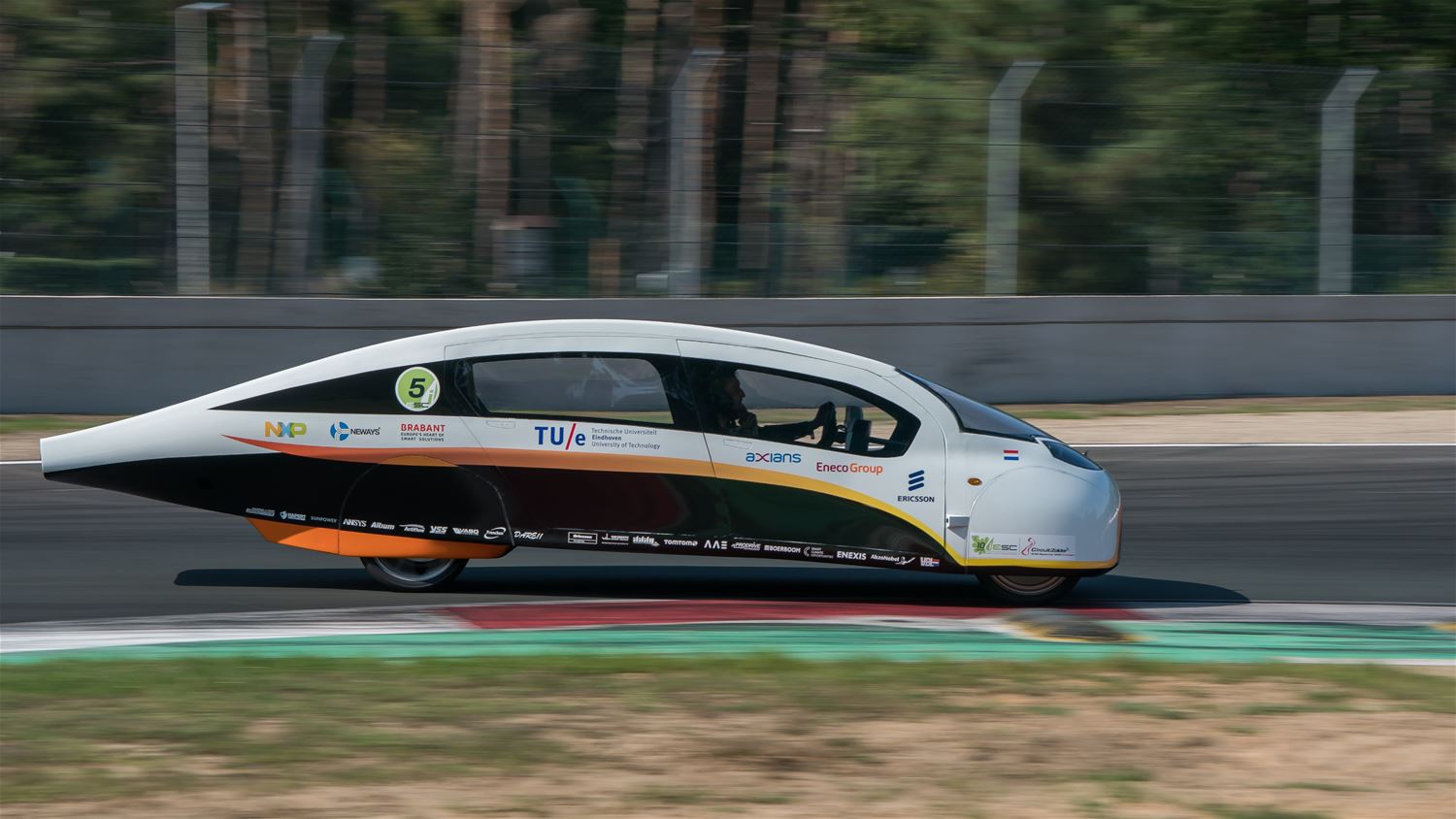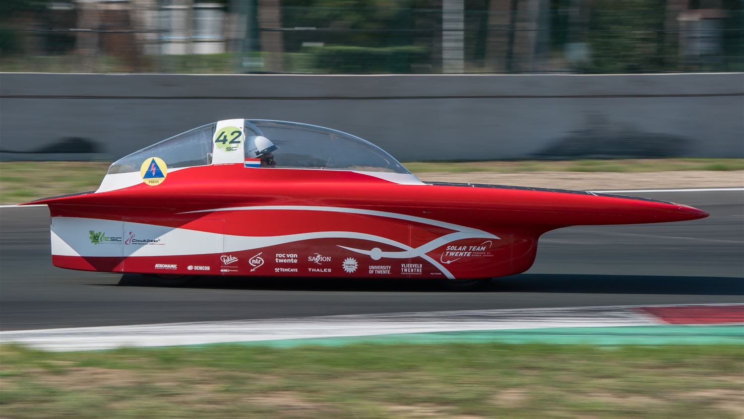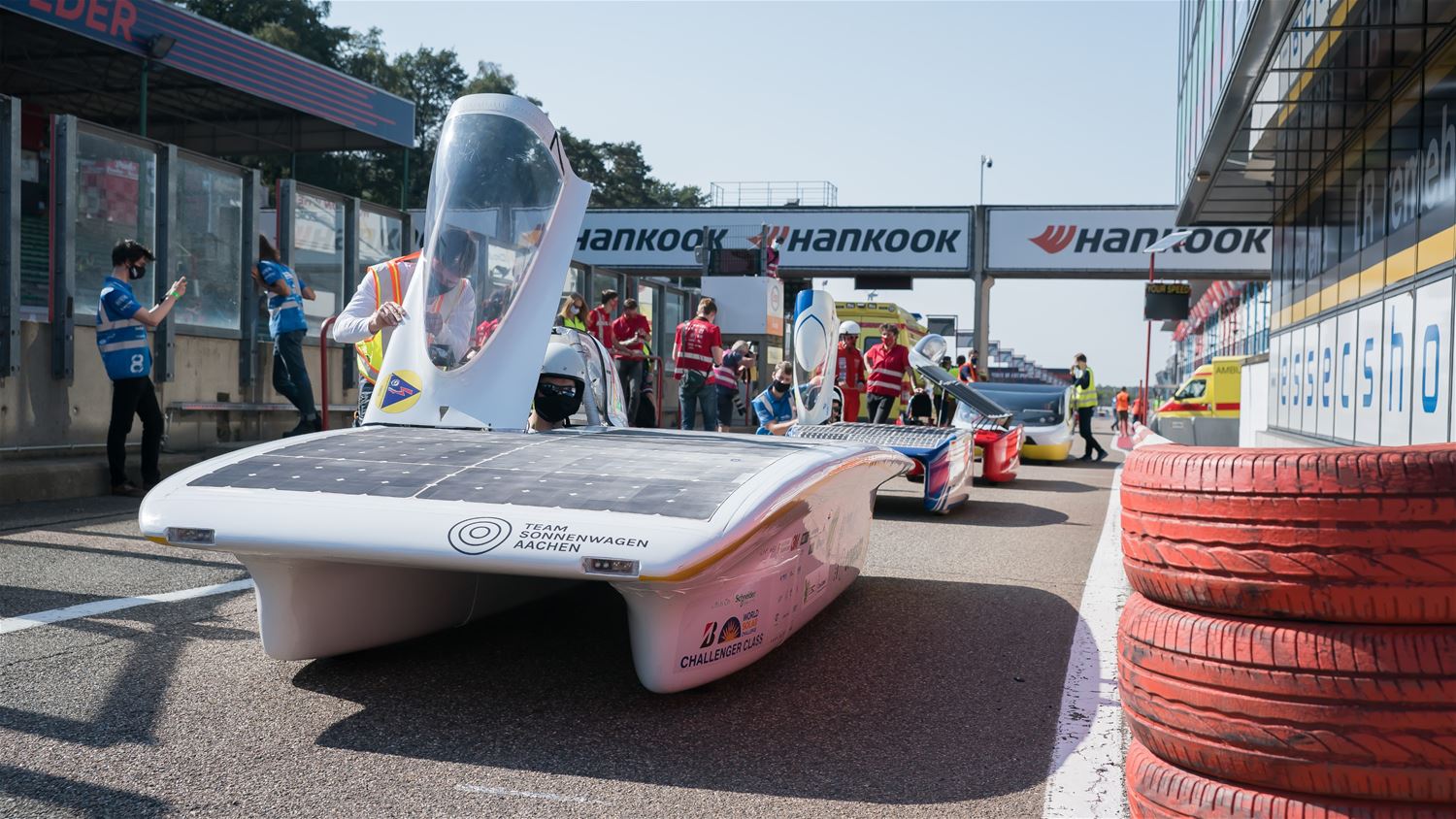 Deze namiddag heeft Vlaams minister van mobiliteit Lydia Peeters de start gegeven van de 24 uurs race voor zonnewagens op Circuit Zolder. Dat gebeurde heel gepast onder een stralende zon. De rijders namen een Le Mans start en gingen er meteen tegenaan. Vanavond reed het Belgische Agoria Solar Team met een stevige voorsprong aan de leiding, met 149 rondes. Dat waren er liefst 15 meer dan Top Dutch Solar Team en 24 meer dan Solar Team Twente. Afwachten of ze die bonus heel de nacht en ochtend door kunnen behouden. (foto's Dirk Dekens)