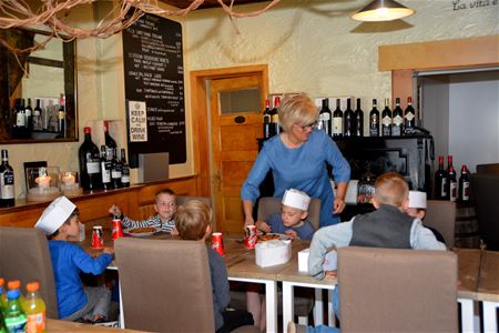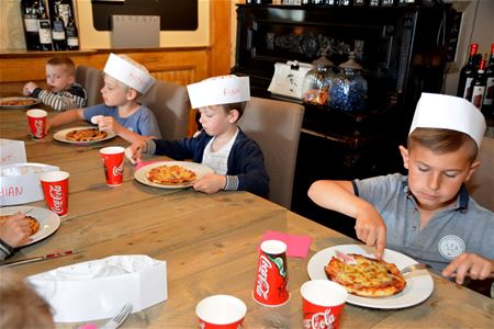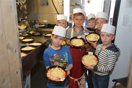 Het eerste leerjaar van de Stedelijke Basisschool van Koersel werkte deze week rond het thema 'We gaan naar de pizzeria'. En als hoogtepunt gingen de leerlingen samen met de juf naar de pizzeria. En zo belandden ze bij Il Canniccio in de Kleuterweg, waar Alberto en Marianne hen de kneepjes van het vak bijbrachten: van de hygiëne, de bestelling, het deeg klaarmaken en beleggen tot de pizza bakken. En als hoogtepunt: de pizza verorberen tot de buikjes rond waren. (foto's Marina Poelmans)40044