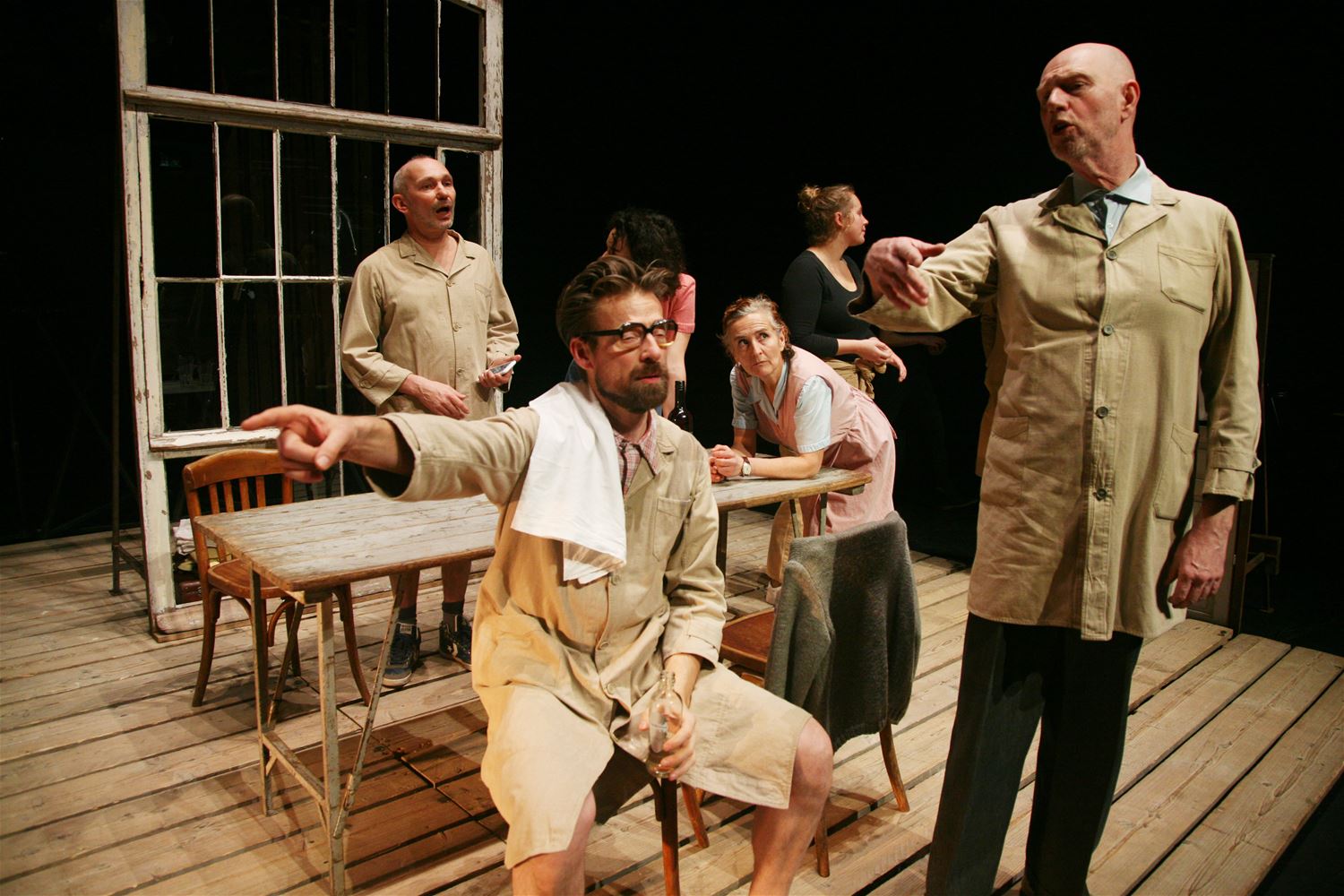 Het was zaterdagavond nog eens een theatervoorstelling in CC Muze waarbij veel kon gelachen worden. Comp. Marius, met vijf geroutineerde acteurs, bracht de satire 'De Schpountz' op de planken. Daarbij baseerden ze zich op het gelijknamige filmscenario van Marcel Pagnol. Erg geslaagd. (foto's Herman Eerdekens)51754