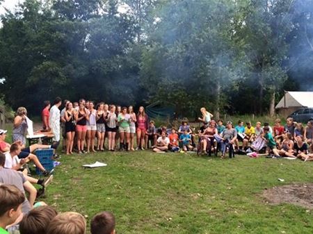 Anita Beutels en Rudi Rykers hebben zich 20 jaar lang ingezet als kookouders voor de scouts van Eversel. Voor hen was dit ronde getal een mooi moment om er een punt achter te zetten. Als bedankje werden ze door de scouts uitbundig gevierd met als kippenvelmoment het afscheidslied van de leiding. (foto's Rita Vanhove)22348