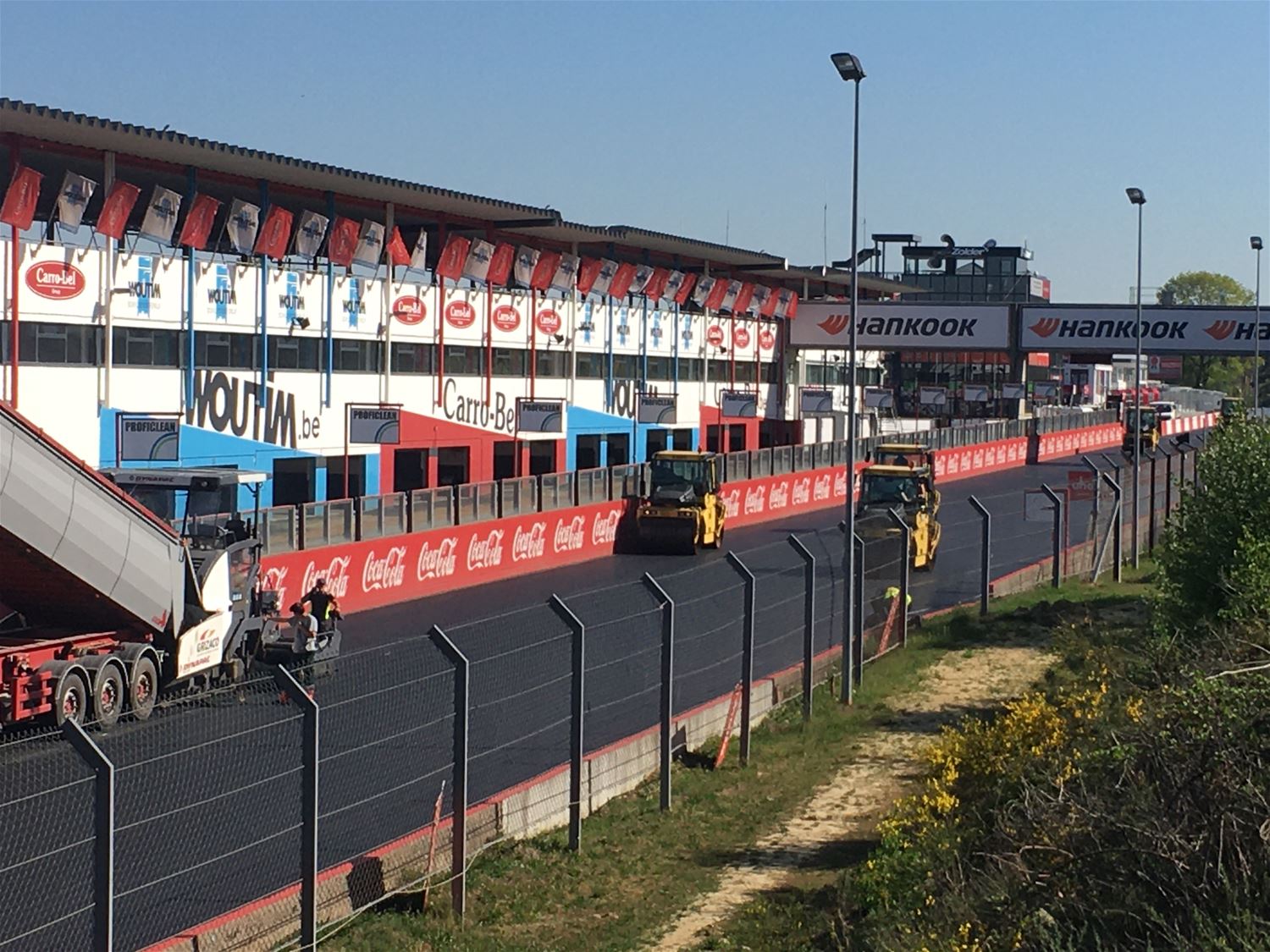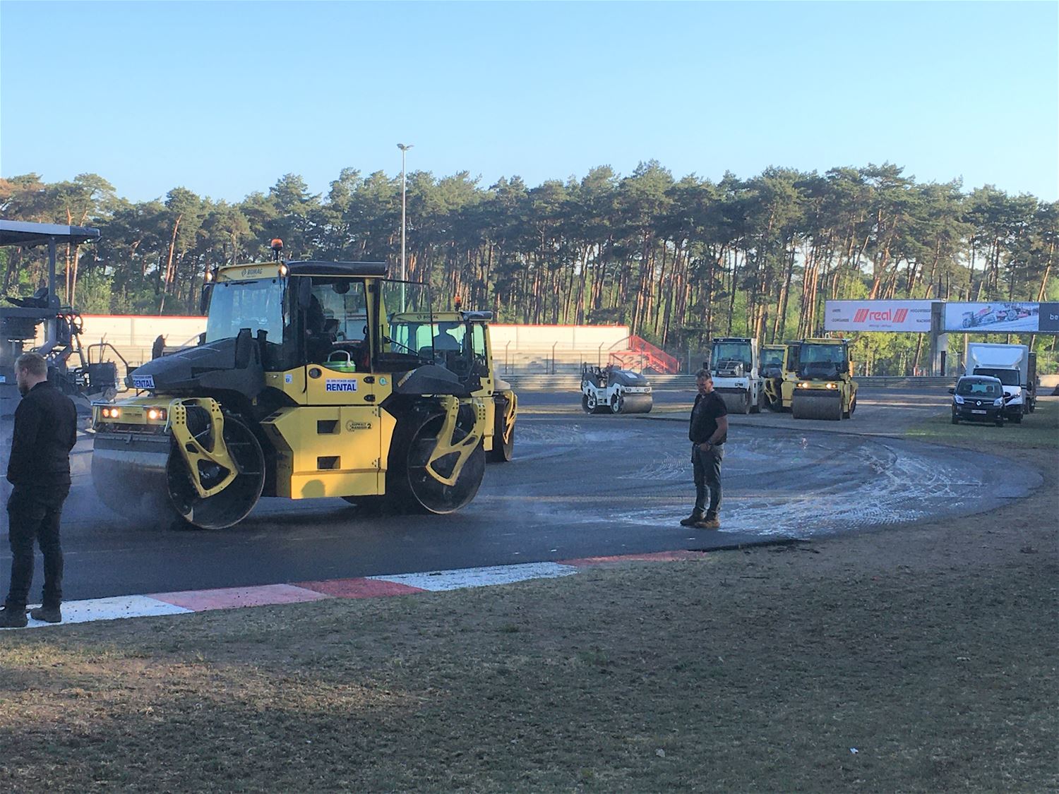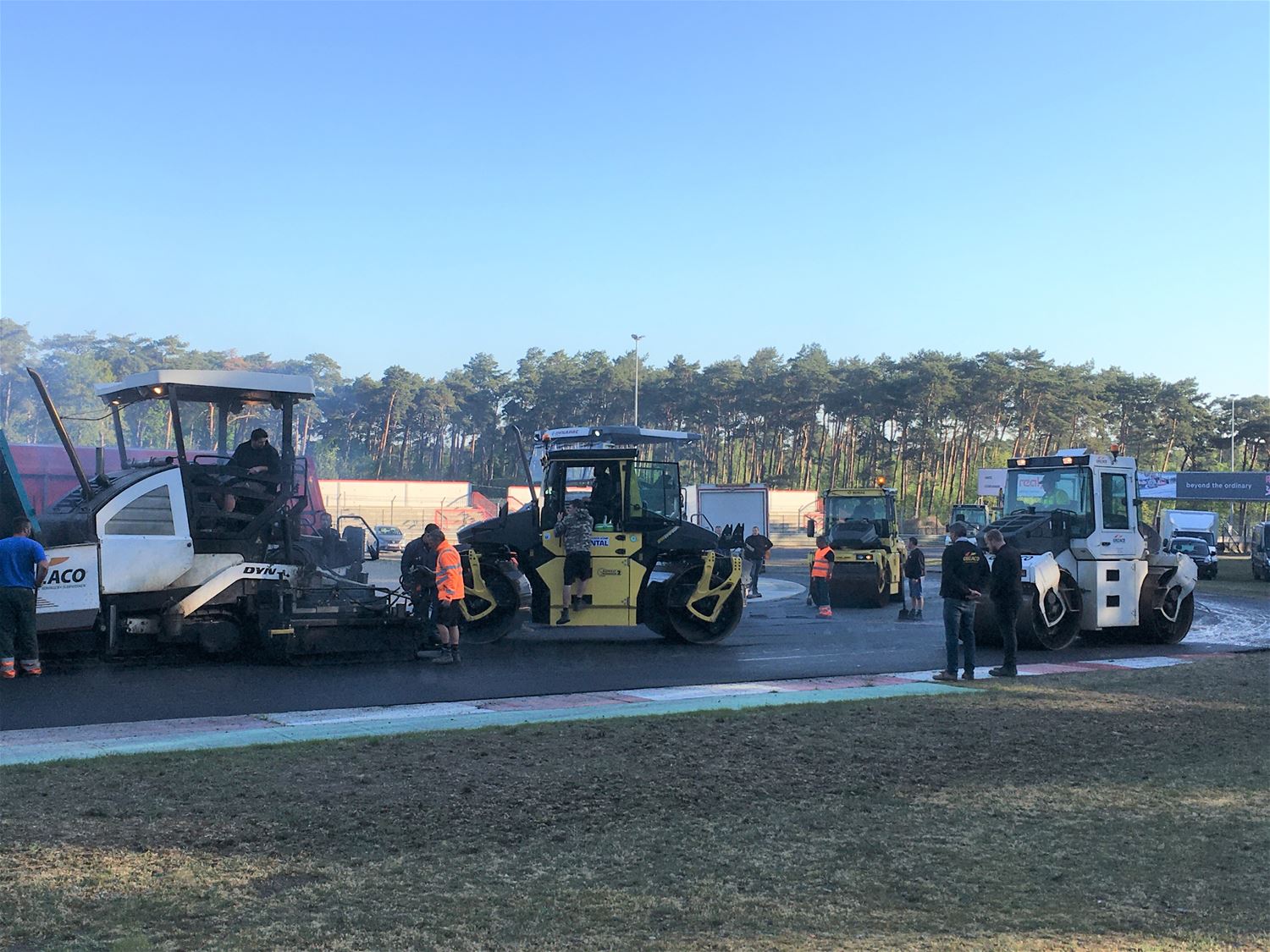 Op Circuit Zolder wordt momenteel een aparte race gereden, die om de asfaltlaag zo snel mogelijk te leggen. Gisteren is de toegangsweg geasfalteerd en vanmorgen zijn de grote werken op de piste opgestart: vandaag gaat het van de Jacky Ickx chicane met als finish de Thierry Boutsen Chicane. Morgen zal het deel tussen Thierry Boutsen Bocht en opnieuw de Jacky Ickx bocht worden gedaan. Maandag volgt de pitlane. De 3 asfalteringsmachines leggen 3 meter per minuut af, 15 vrachtwagens voeren permanent asfalt aan en 10 zware machines zorgen voor het aanwalsen. David Vanderbeek van het circuit maakt de vergelijking met een race: "De vrachtwagens en freesmachines op kop, de walsen als interventiewagens en de projectleiders, ingenieurs en onderzoekscentrum die de activiteiten als baancommissarissen en race controlcenter opvolgen.53621