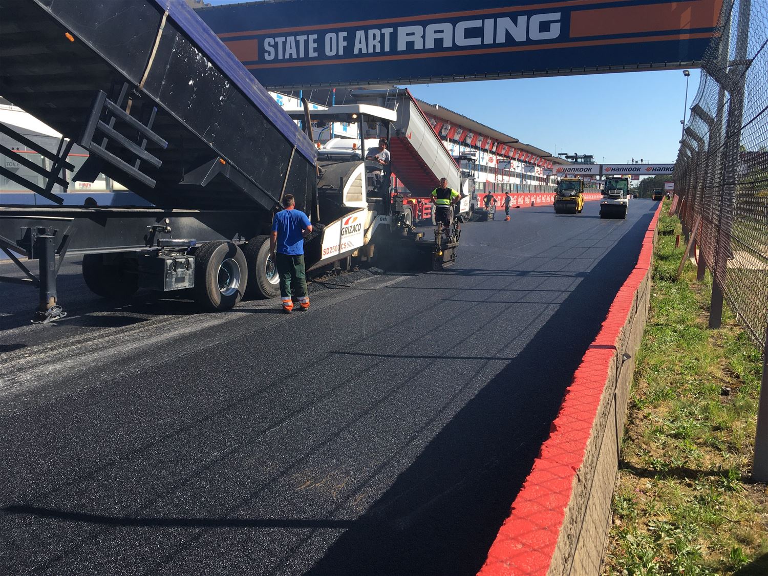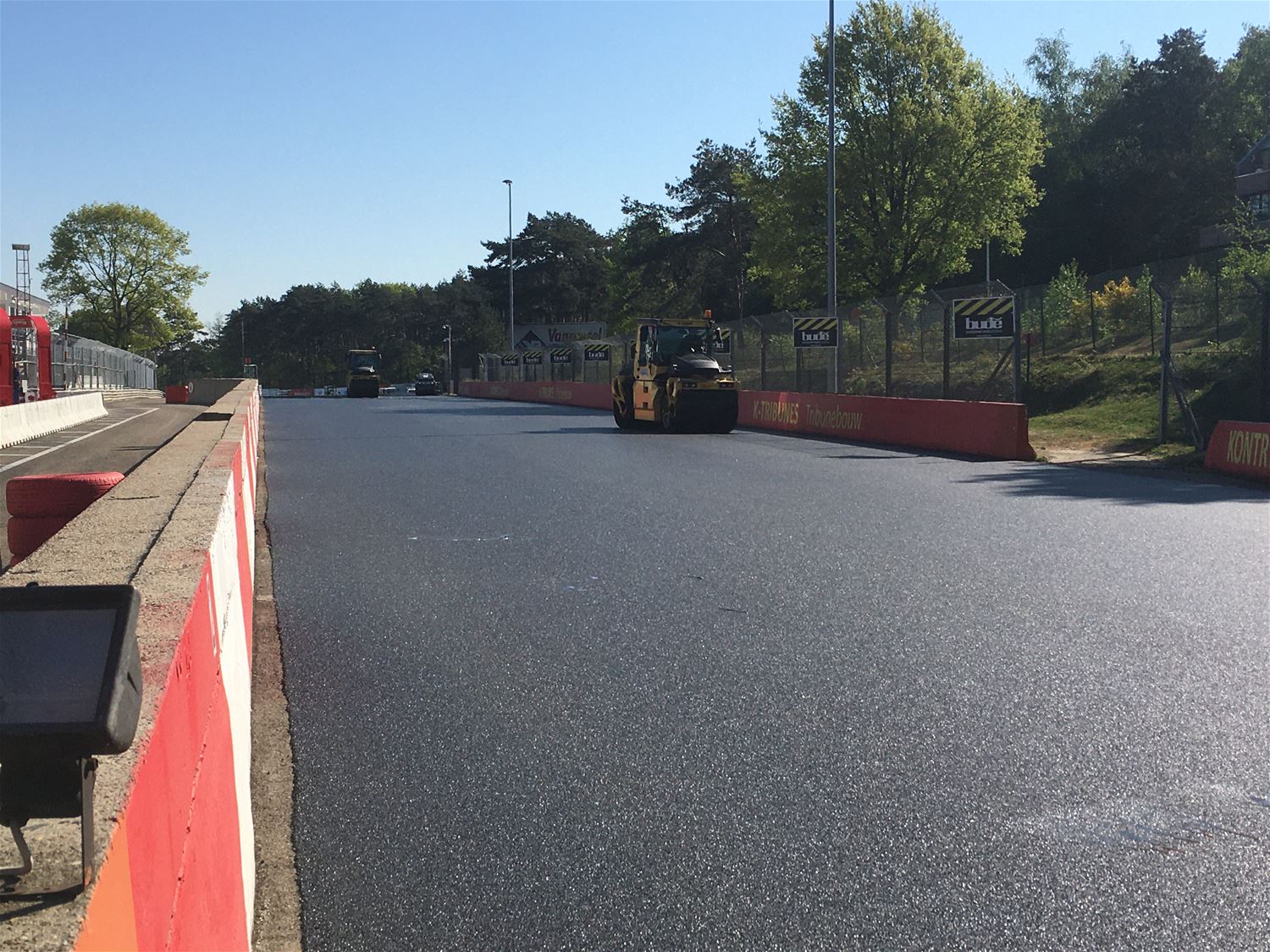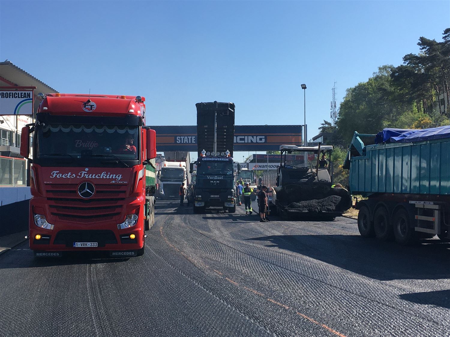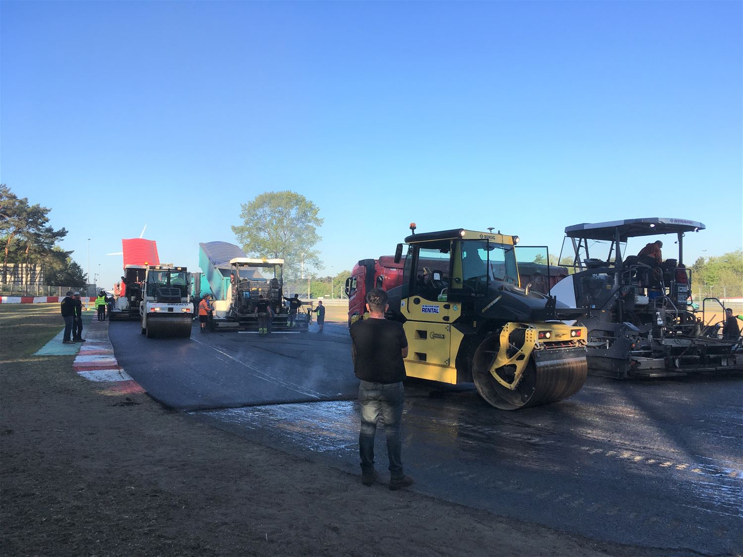 Op Circuit Zolder wordt momenteel een aparte race gereden, die om de asfaltlaag zo snel mogelijk te leggen. Gisteren is de toegangsweg geasfalteerd en vanmorgen zijn de grote werken op de piste opgestart: vandaag gaat het van de Jacky Ickx chicane met als finish de Thierry Boutsen Chicane. Morgen zal het deel tussen Thierry Boutsen Bocht en opnieuw de Jacky Ickx bocht worden gedaan. Maandag volgt de pitlane. De 3 asfalteringsmachines leggen 3 meter per minuut af, 15 vrachtwagens voeren permanent asfalt aan en 10 zware machines zorgen voor het aanwalsen. David Vanderbeek van het circuit maakt de vergelijking met een race: "De vrachtwagens en freesmachines op kop, de walsen als interventiewagens en de projectleiders, ingenieurs en onderzoekscentrum die de activiteiten als baancommissarissen en race controlcenter opvolgen.53621