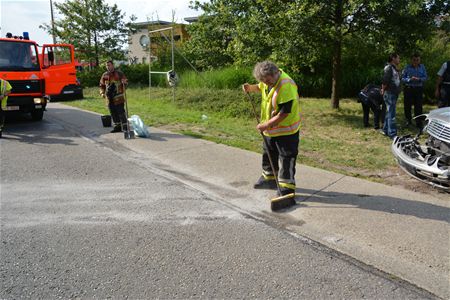 In de vooravond zijn in de Koolmijnlaan twee auto's gebotst. Een wagen die de vroegere hoofdingang van de mijn verliet, reed een andere auto in de flank. De materiële schade was groot maar niemand raakte echt gewond. De brandweer kwam ter plaatse om het wegdek op te ruimen. (foto's Dimitri Reynders)16399