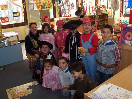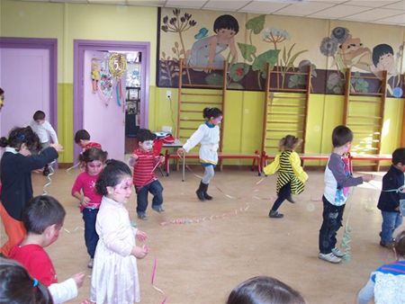 De kleuters van 't Bergske in Zolder beleefden vandaag één van hun leukste dagen van 't jaar. De kleuterleidsters juf Laura, juf Sevim, juf Belinda en stagiaire juf Elbru.hadden niet alleen zichzelf verkleed, maar de juffen schminkten ook de kleuters. Er werd gedanst en er werden ballonnen geplooid ... zoals echte ballonclowns.7042