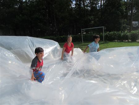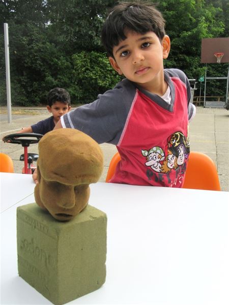 Op dag 3 van 'A road to somewhere' hebben de bewoners van De Bark en de vrijwilligers/kunstenaars van Art 27/Het Berenhuis onder een stralende zon weer een andere kunstdiscipline onder de knie gekregen. Tjen Heyligen leerde hen beeldhouwen in steekschuim voor bloemen. Uiteraard werden er ook bootjes gemaakt. Daarna bouwden ze een enorme luchtbel die op tijdens het slotfeest op 5 augustus zal dienen als expositieruimte. (meer foto's)