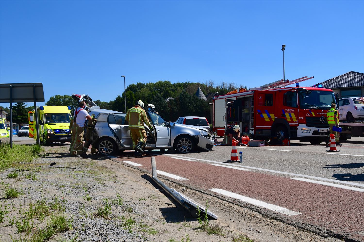 Op de Beringersteenweg ter hoogte van het kruispunt met de Joachimstraat en de Pater Beckersstraat zijn deze namiddag twee auto's gebotst. Bij de harde klap raakte in één auto een slachtoffer gekneld. Brandweer en ambulance van de brandweer Heusden-Zolder snelden ter plaatse, en ook de MUG van Hasselt die het slachtoffer de eerste zorgen gaf. De weg is volledig versperd.