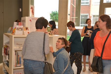 In de bibliotheek is vanmiddag het Taalpunt Nederlands geopend. Dat is een aangepaste collectie voor nieuwkomers of anderstaligen die Nederlands willen leren of oefenen, of voor Nederlandstaligen die in hun moedertaal beter willen leren lezen en schrijven. De bib werkt daarvoor samen met het Agentschap Integratie en Inburgering. Het nieuwe initiatief werd toegelicht door Alice Verraest van de bib en schepen Marleen Hoydonckx. In het aanbod zitten onder meer cursussen met audio, oefenmaterialen, beeldwoordenboeken, boeken voor grammatica en spelling, luisterboeken, Vlaamse films en muziek, de krant in eenvoudige taal en een computer met links om online Nederlands te oefenen. In de bib vind je ook taalspelletjes en een nieuwe categorie ‘Samen oefenen met kinderen’ met eenvoudige of tweetalige boekjes. (foto's Marina Poelmans)43448