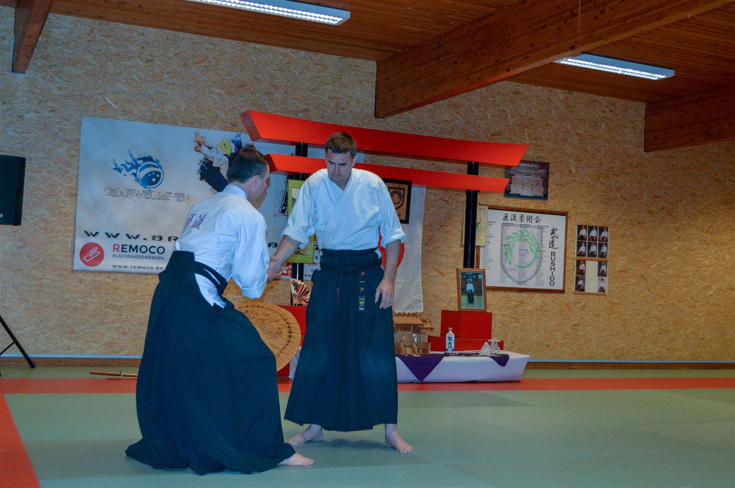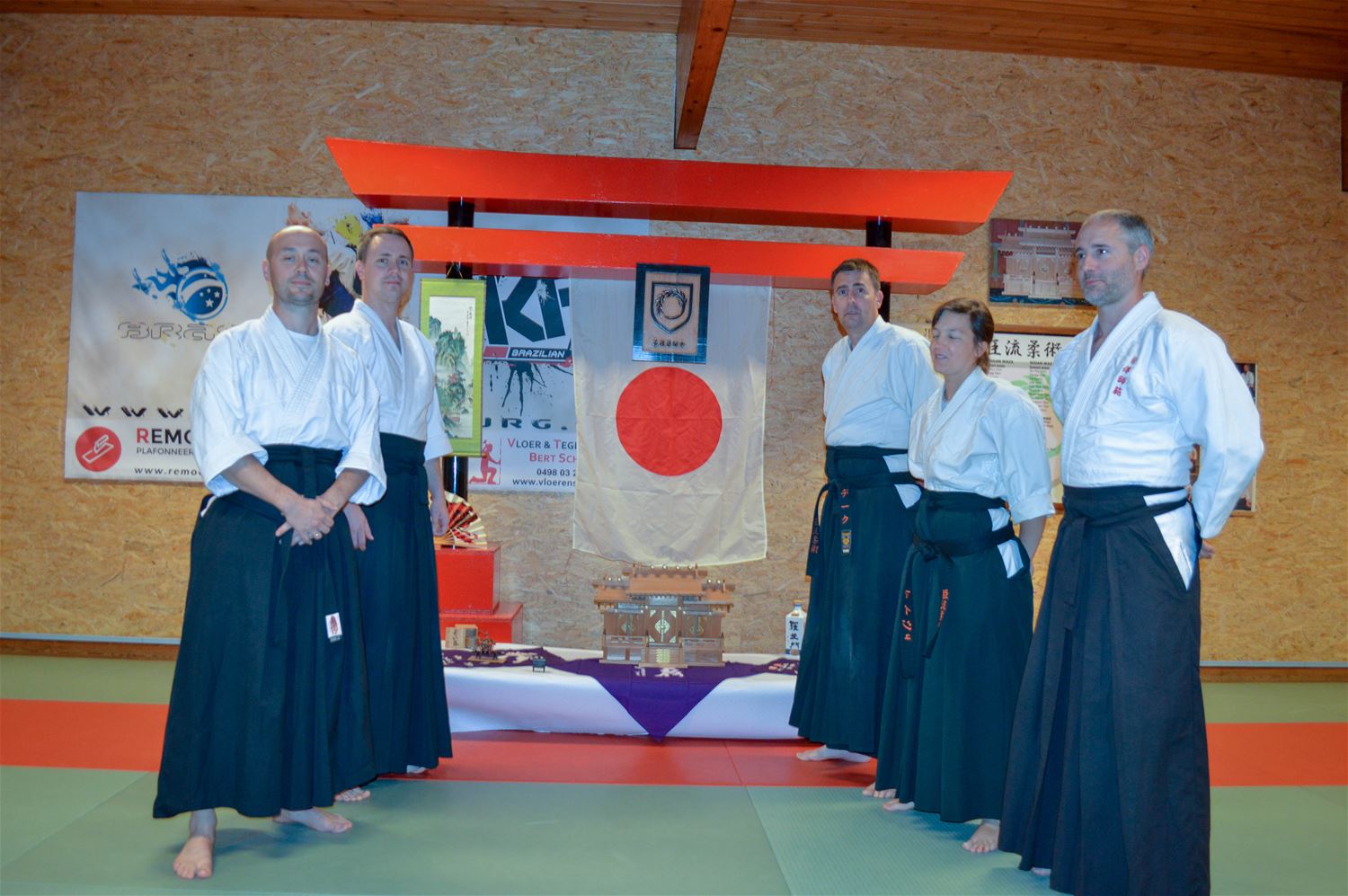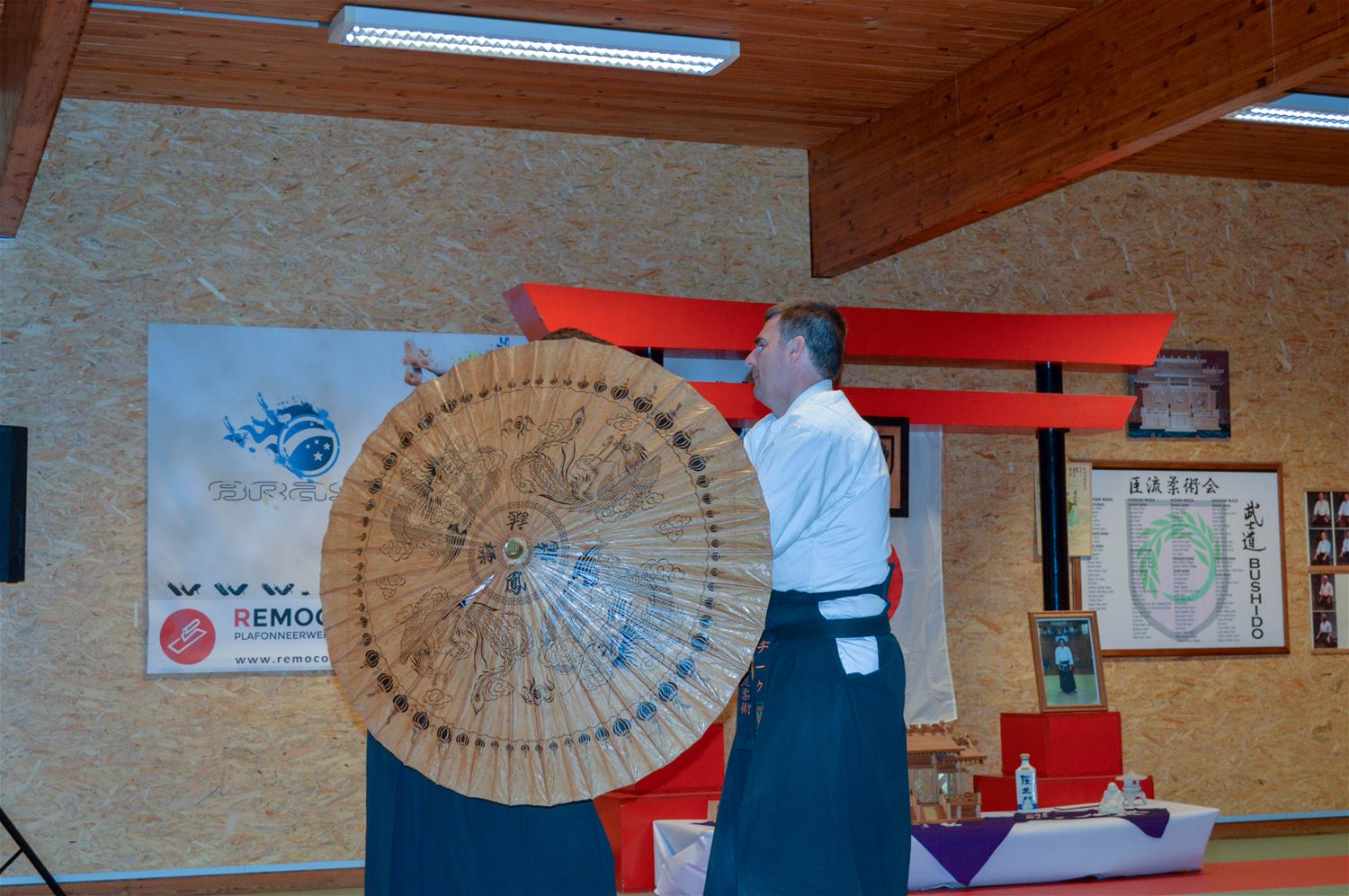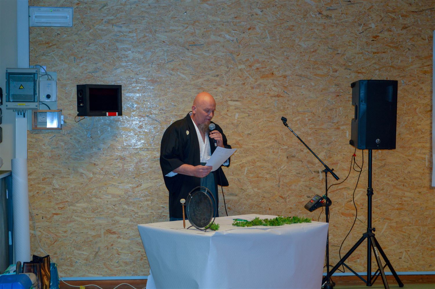 Vanavond was in het judolokaal in Zolder-Centrum veel volk samengekomen voor een speciale plechtigheid. Sigurd Munters van Bushido Jiu-Jitsu kreeg met de nodige traditionele rituelen zijn titel van Shi-Han overhandigd. Enkele weken geleden werd hij tijdens een gelijkaardige plechtigheid in Japan als grootmeester erkend. Nu konden de andere leden van de club, familie, vrienden en geïnteresseerden de uitzonderlijke plechtigheid opnieuw meemaken en tegelijk ook genieten van een aantal demonstraties. Na enkele toespraken, kreeg Sigurd zijn paarse gordel en de bijhorende oorkonde. Daarop werd geklonken, uiteraard met sake. (foto’s David Amgad)46599