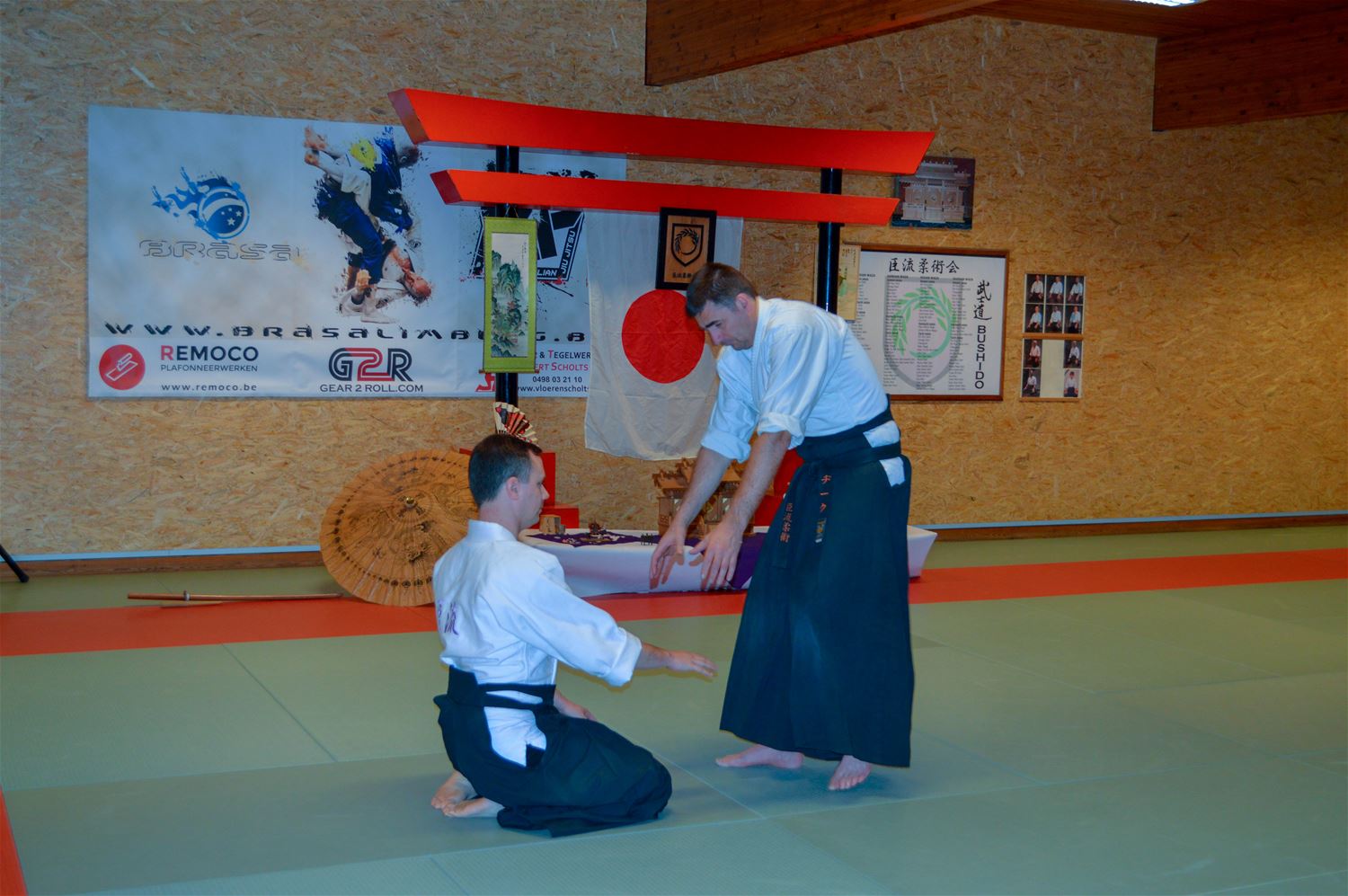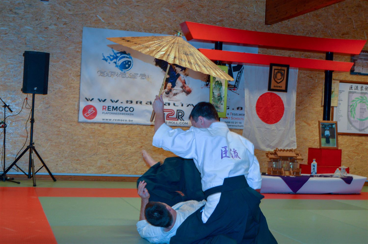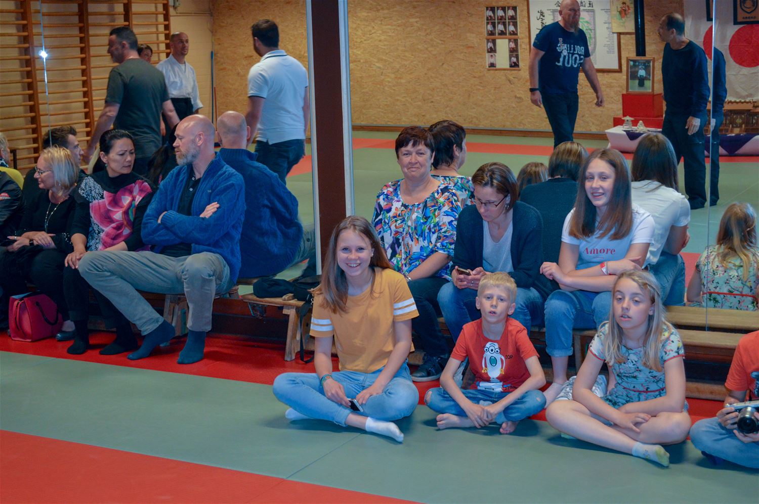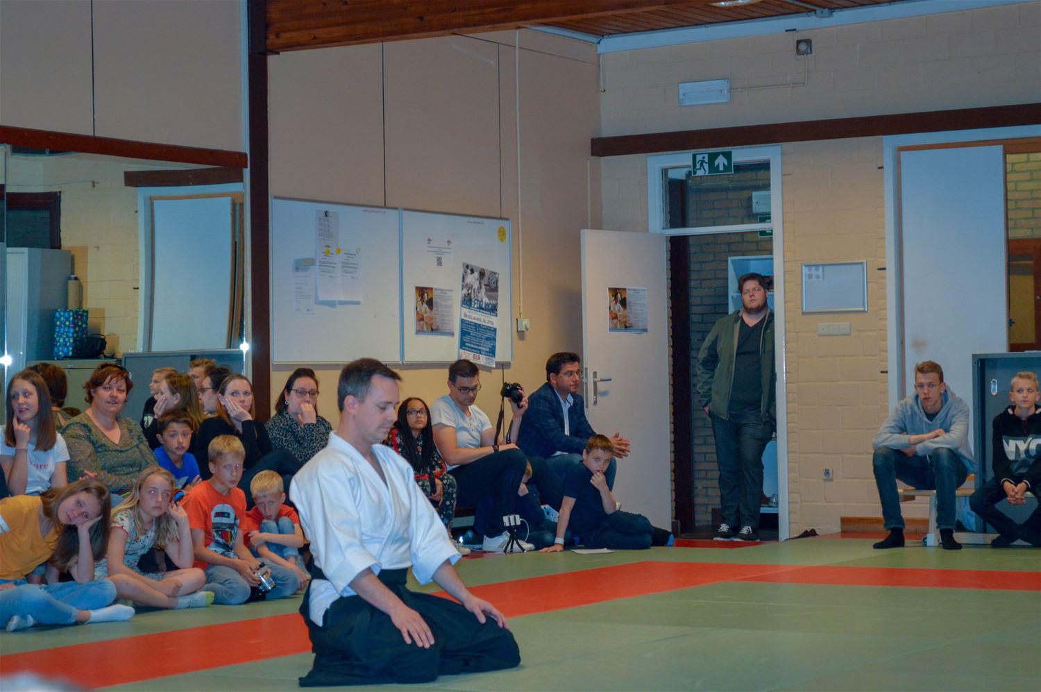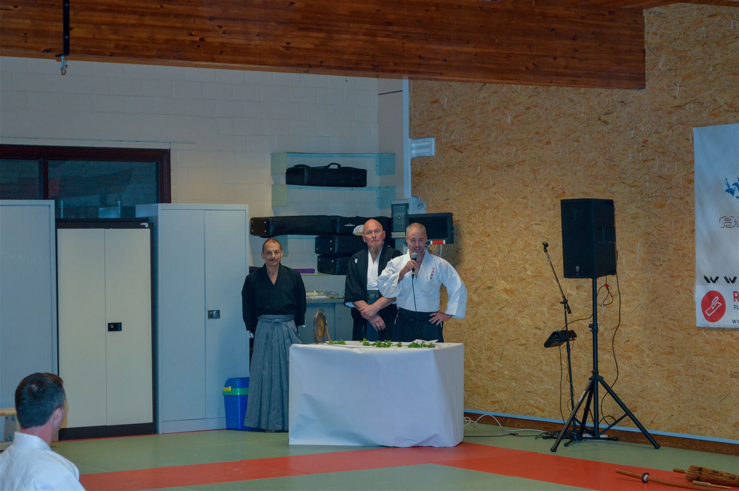 Vanavond was in het judolokaal in Zolder-Centrum veel volk samengekomen voor een speciale plechtigheid. Sigurd Munters van Bushido Jiu-Jitsu kreeg met de nodige traditionele rituelen zijn titel van Shi-Han overhandigd. Enkele weken geleden werd hij tijdens een gelijkaardige plechtigheid in Japan als grootmeester erkend. Nu konden de andere leden van de club, familie, vrienden en geïnteresseerden de uitzonderlijke plechtigheid opnieuw meemaken en tegelijk ook genieten van een aantal demonstraties. Na enkele toespraken, kreeg Sigurd zijn paarse gordel en de bijhorende oorkonde. Daarop werd geklonken, uiteraard met sake. (foto’s David Amgad)46599