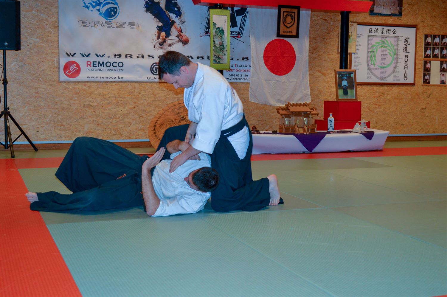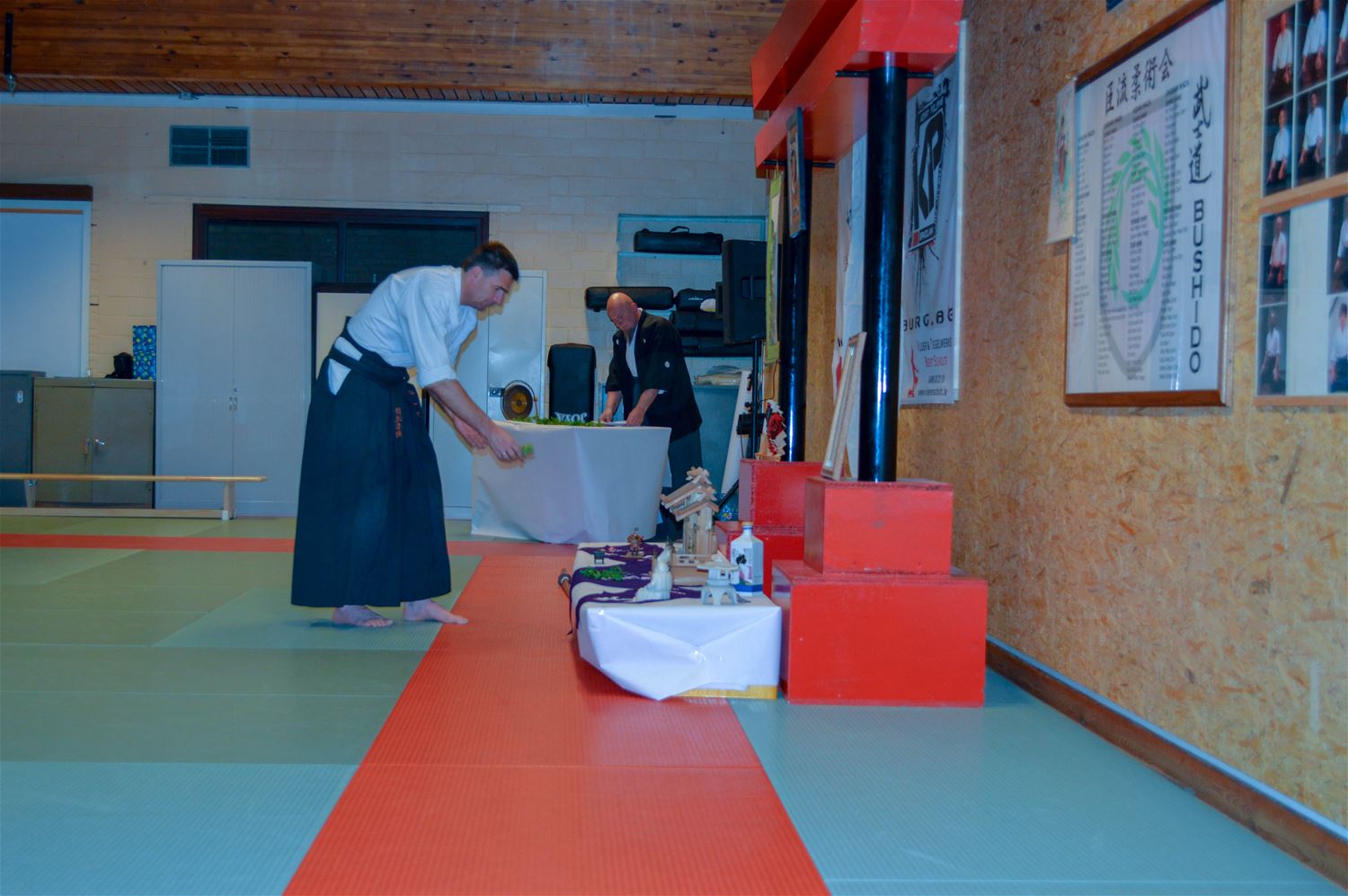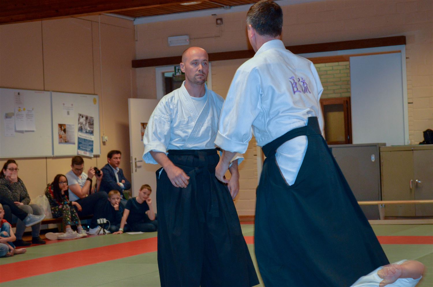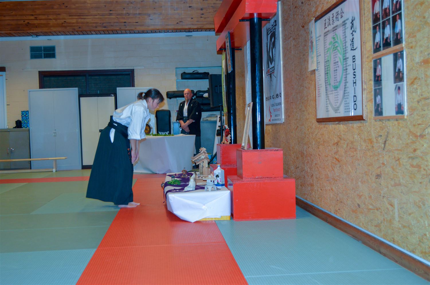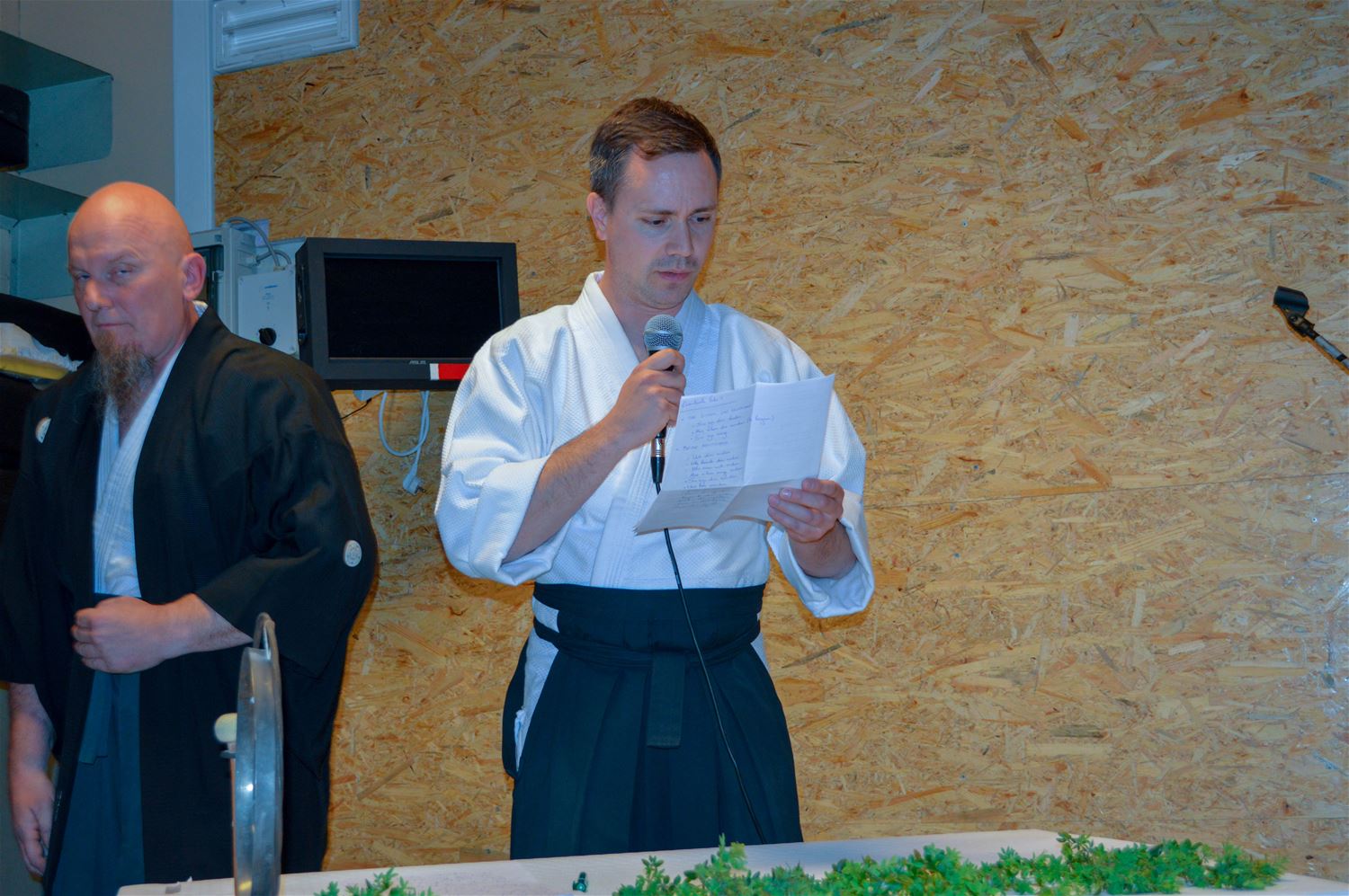 Vanavond was in het judolokaal in Zolder-Centrum veel volk samengekomen voor een speciale plechtigheid. Sigurd Munters van Bushido Jiu-Jitsu kreeg met de nodige traditionele rituelen zijn titel van Shi-Han overhandigd. Enkele weken geleden werd hij tijdens een gelijkaardige plechtigheid in Japan als grootmeester erkend. Nu konden de andere leden van de club, familie, vrienden en geïnteresseerden de uitzonderlijke plechtigheid opnieuw meemaken en tegelijk ook genieten van een aantal demonstraties. Na enkele toespraken, kreeg Sigurd zijn paarse gordel en de bijhorende oorkonde. Daarop werd geklonken, uiteraard met sake. (foto’s David Amgad)46599