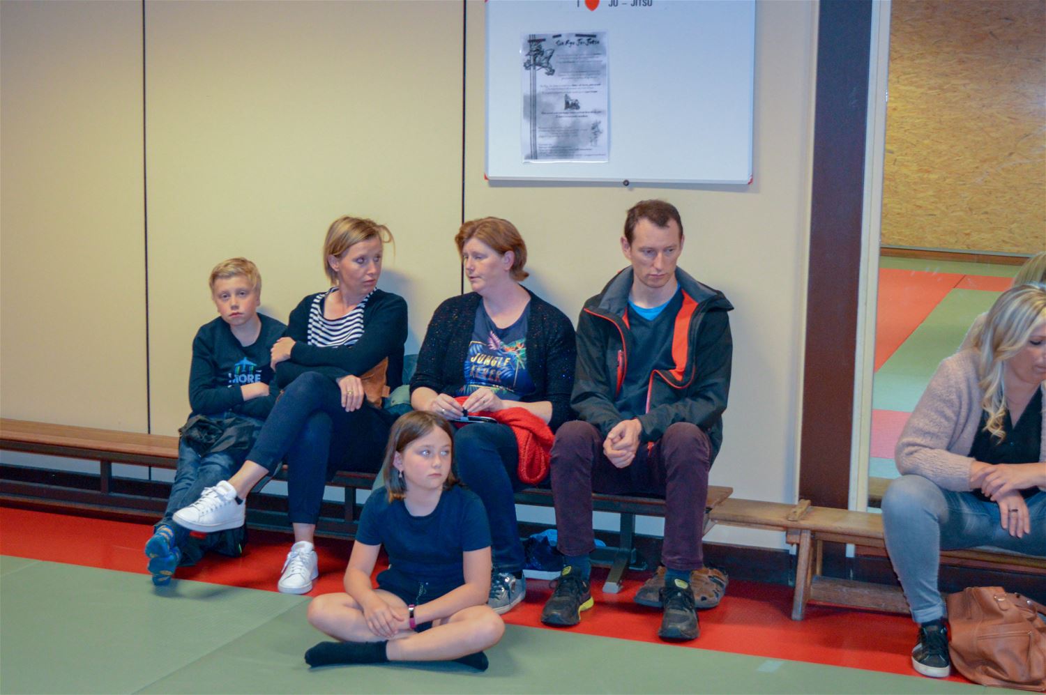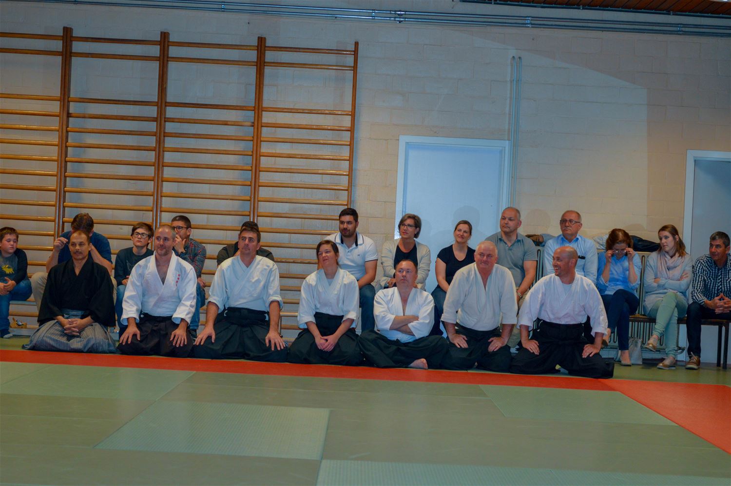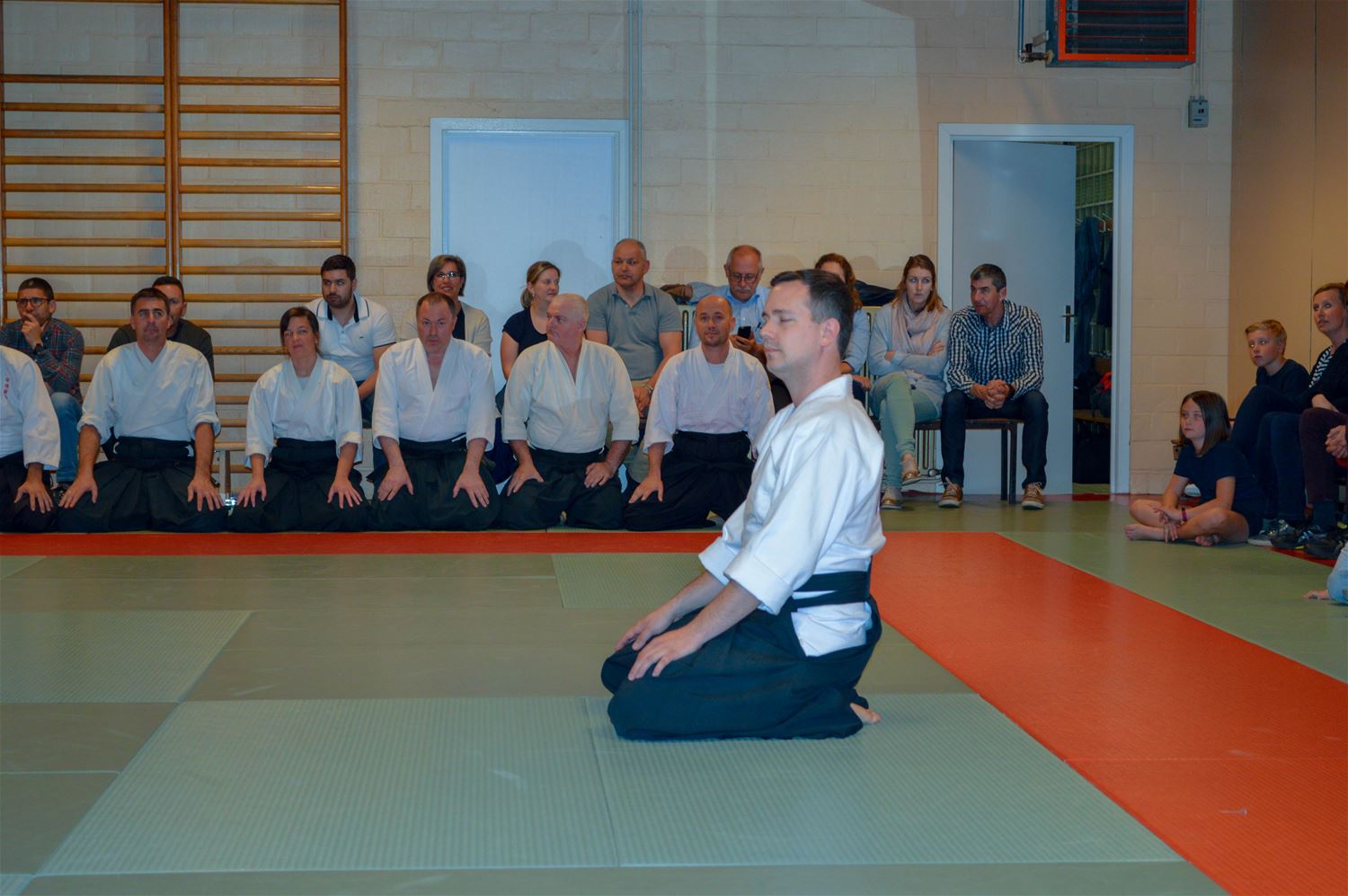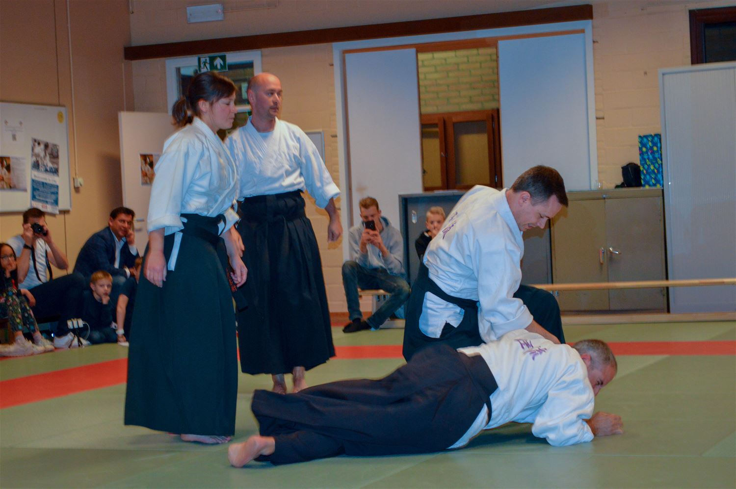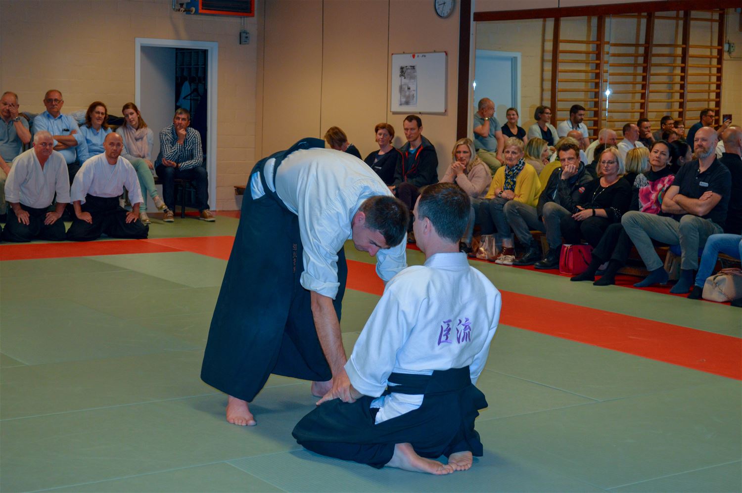 Vanavond was in het judolokaal in Zolder-Centrum veel volk samengekomen voor een speciale plechtigheid. Sigurd Munters van Bushido Jiu-Jitsu kreeg met de nodige traditionele rituelen zijn titel van Shi-Han overhandigd. Enkele weken geleden werd hij tijdens een gelijkaardige plechtigheid in Japan als grootmeester erkend. Nu konden de andere leden van de club, familie, vrienden en geïnteresseerden de uitzonderlijke plechtigheid opnieuw meemaken en tegelijk ook genieten van een aantal demonstraties. Na enkele toespraken, kreeg Sigurd zijn paarse gordel en de bijhorende oorkonde. Daarop werd geklonken, uiteraard met sake. (foto’s David Amgad)46599