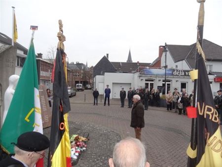 De hoofdviering van de herdenking van de Wapenstilstand vindt dit jaar in Zolder plaats. Maar voor de eucharistieviering en plechtigheid daar begon, zakten de officiële delegaties naar het monument in Heusden af voor een groet en bloemenhulde. (foto's Julien Maebe)23278