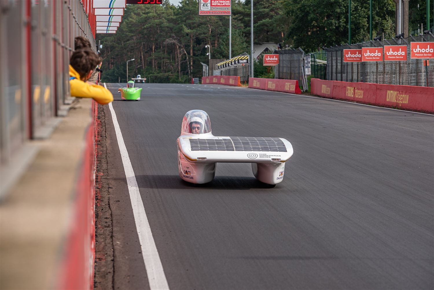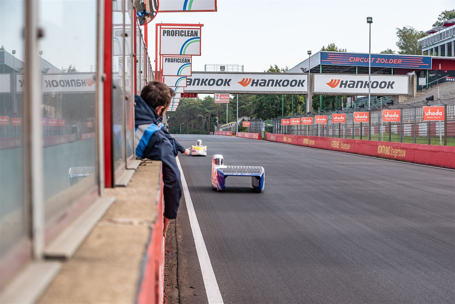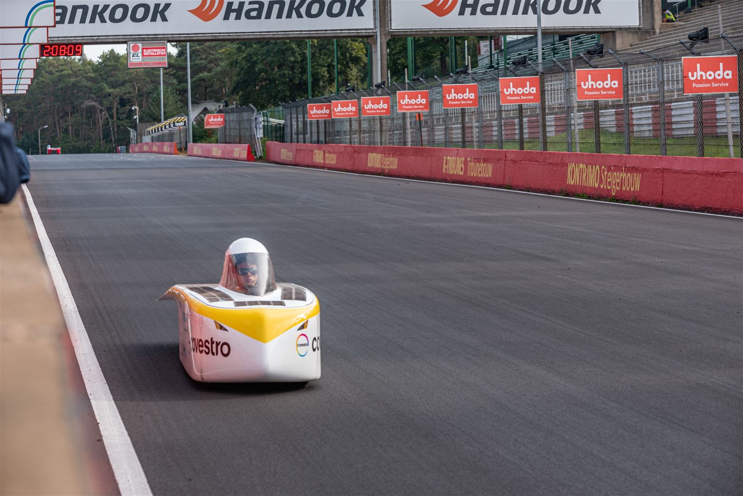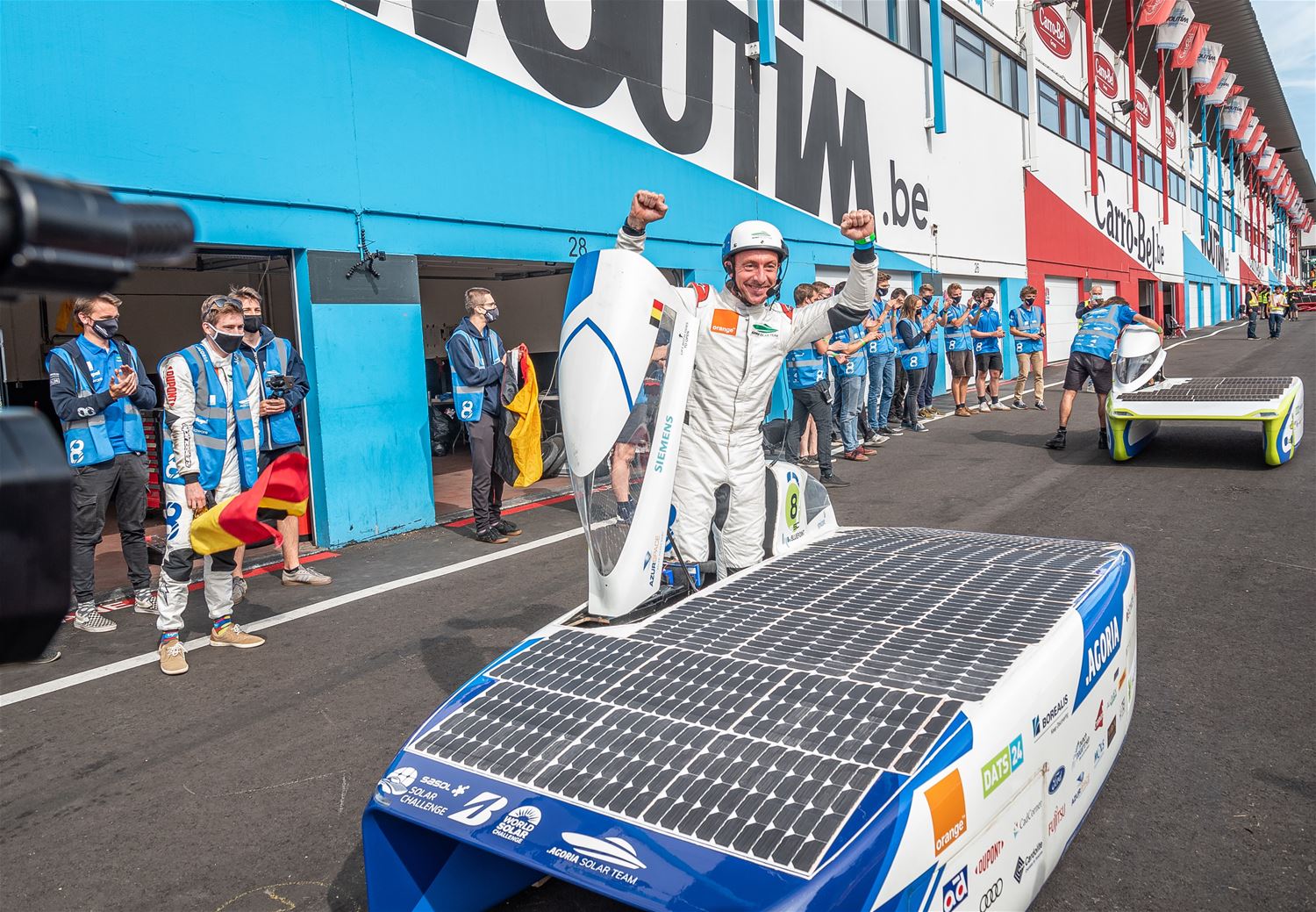 De iLumen European Solar Challenge zit erop. Het Agoria Solar Team is op geen enkel moment bedreigd en heeft op overtuigende wijze de 24 uurs race gewonnen. Bert Longin nam de laatste rondes voor zijn rekening. In het totaal legde de Bluepoint 352 rondes af, dat is afgerond 1408 km. De tweede en derde plaats was voor beide wagens van Solar Team Twente op respectievelijk 39 en 48 rondes. De Punch Two, de tweede wagen van Agoria Solar Team werd vijfde op 63 rondes. (foto's Ann Jordens)