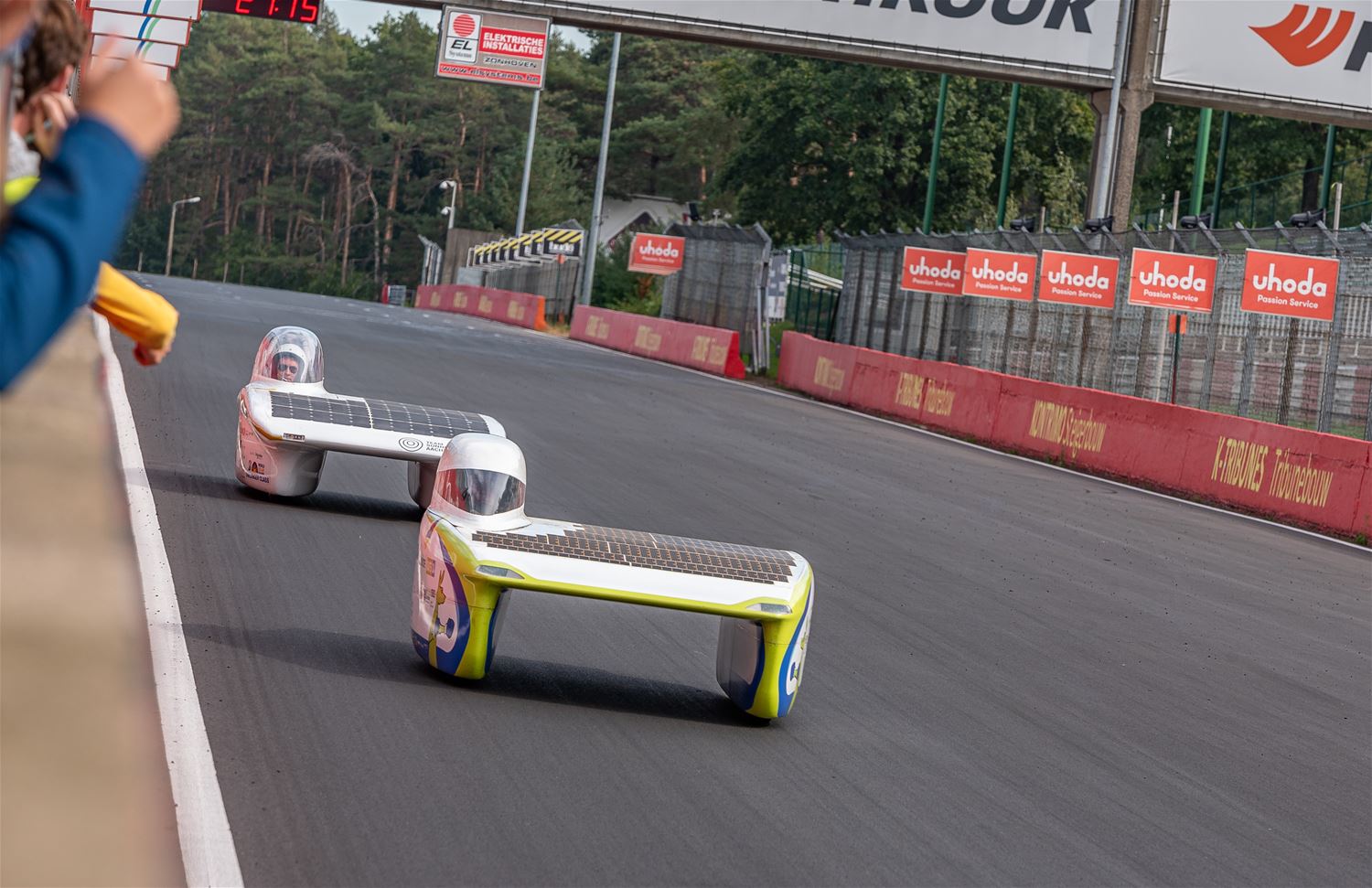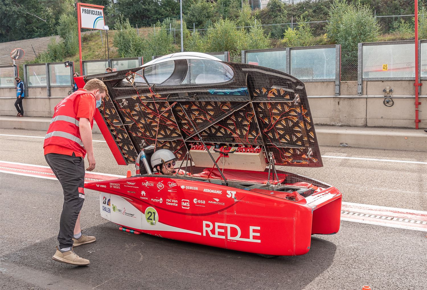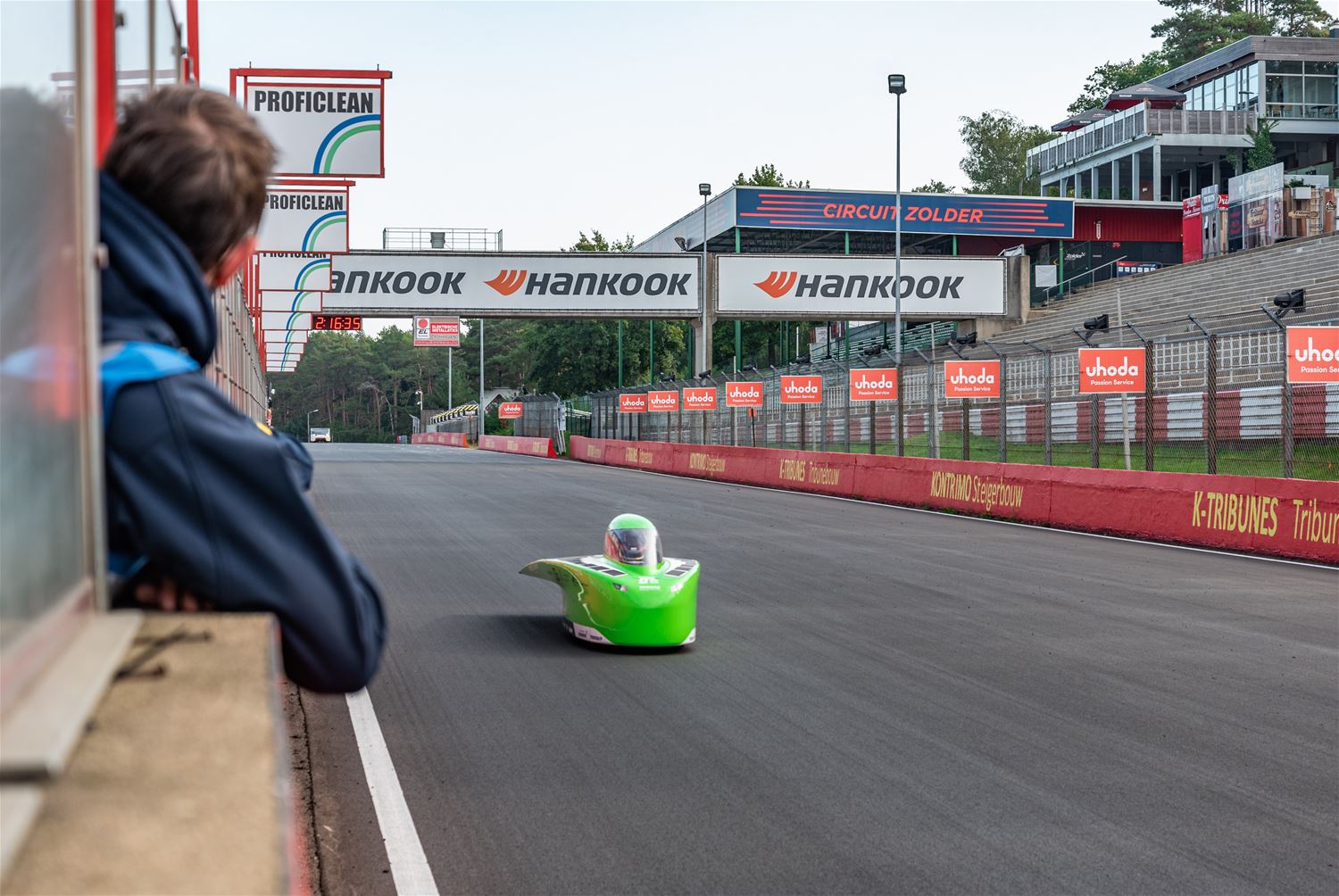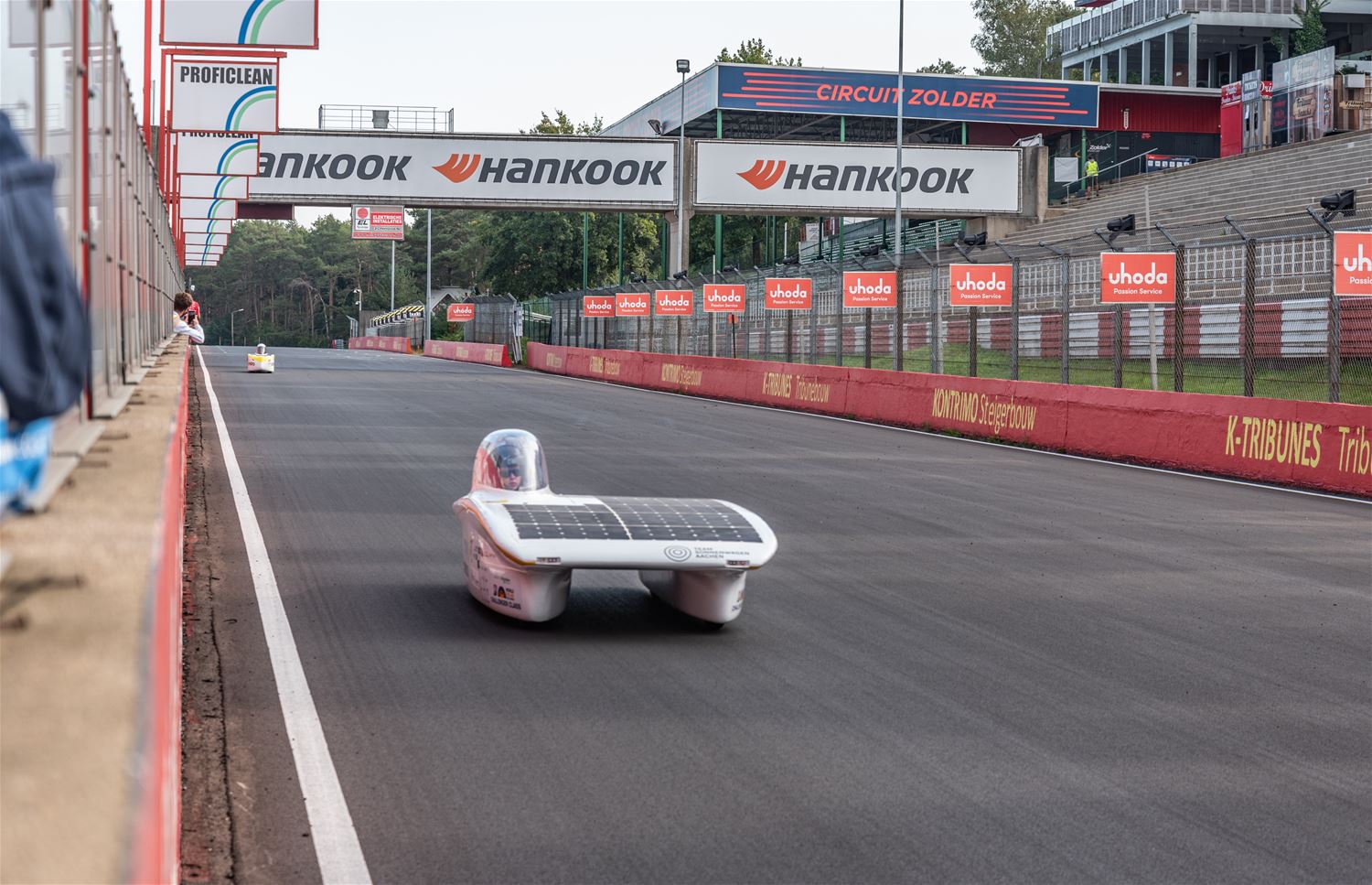 De iLumen European Solar Challenge zit erop. Het Agoria Solar Team is op geen enkel moment bedreigd en heeft op overtuigende wijze de 24 uurs race gewonnen. Bert Longin nam de laatste rondes voor zijn rekening. In het totaal legde de Bluepoint 352 rondes af, dat is afgerond 1408 km. De tweede en derde plaats was voor beide wagens van Solar Team Twente op respectievelijk 39 en 48 rondes. De Punch Two, de tweede wagen van Agoria Solar Team werd vijfde op 63 rondes. (foto's Ann Jordens)