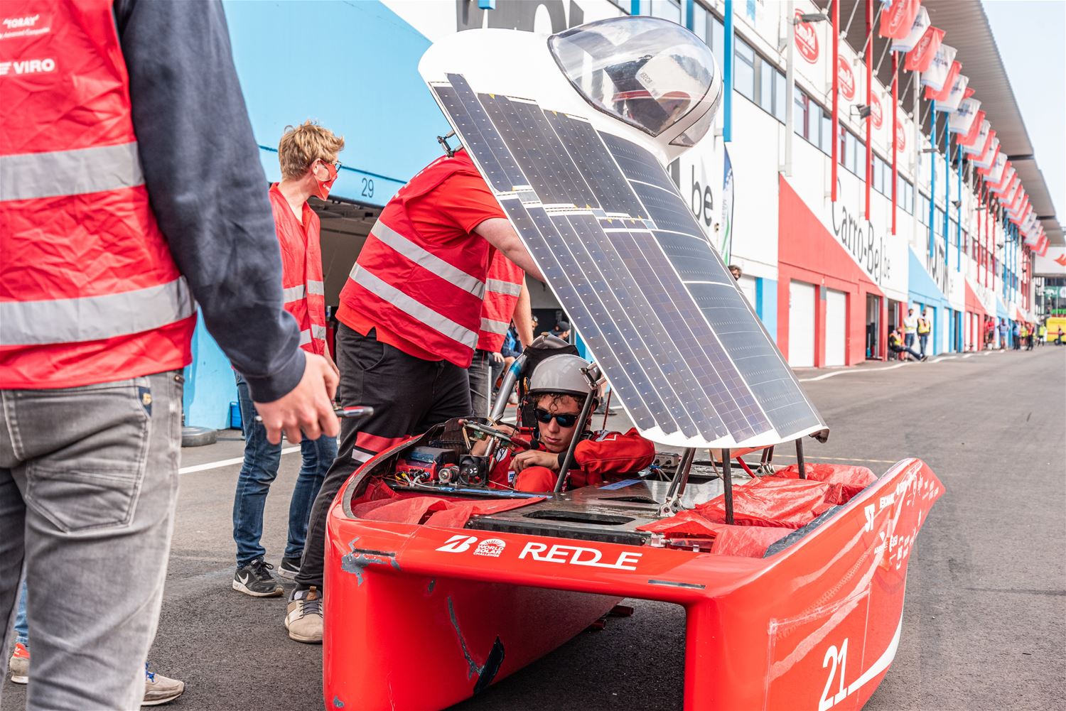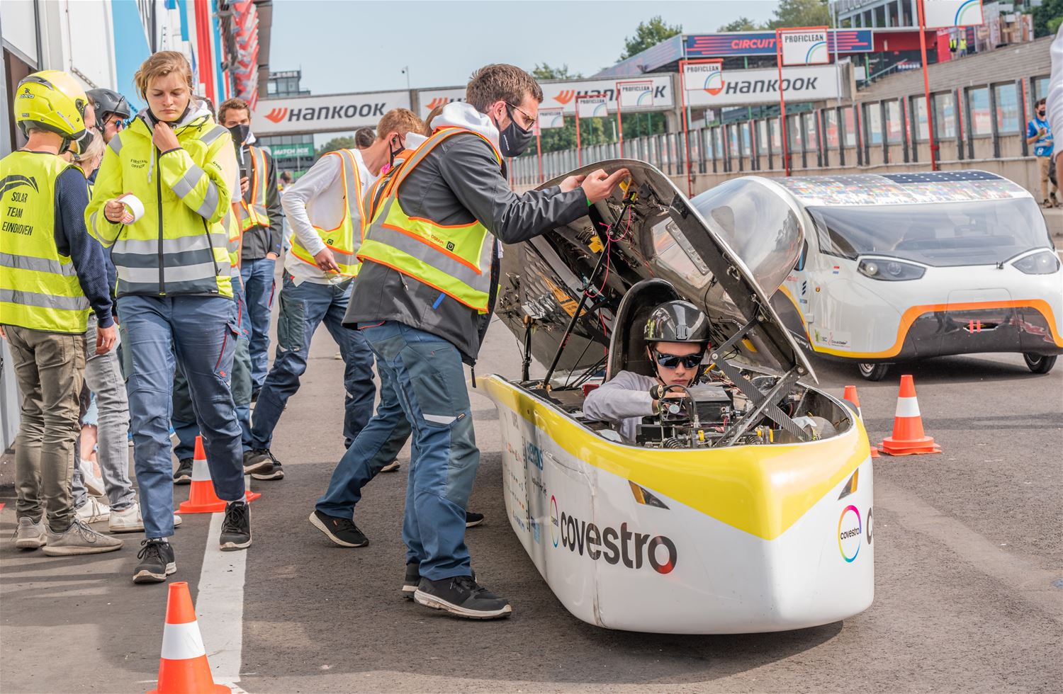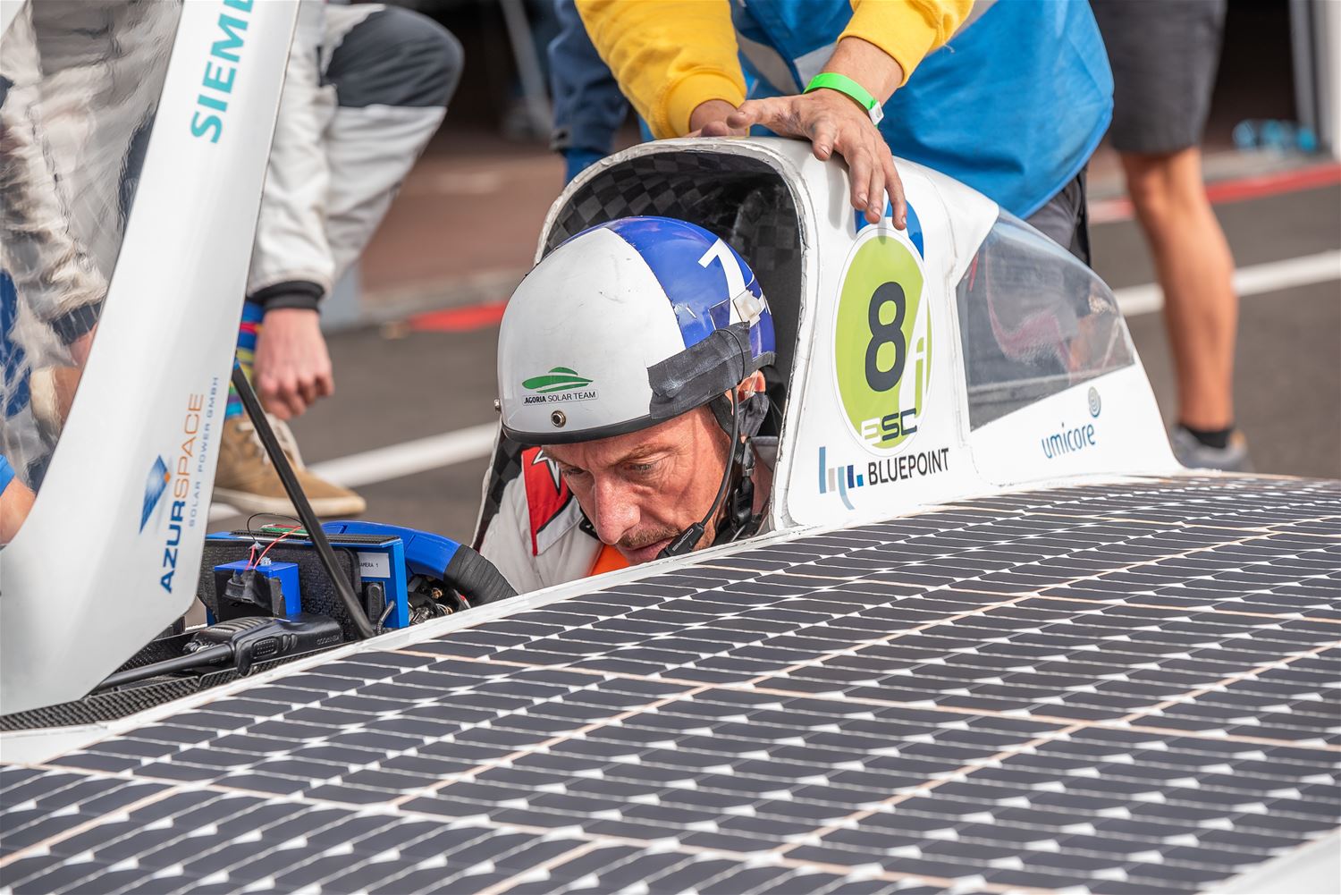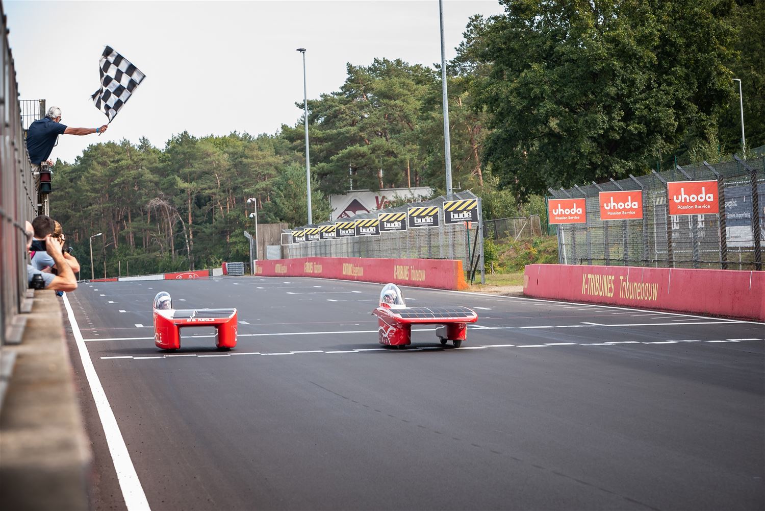 De iLumen European Solar Challenge zit erop. Het Agoria Solar Team is op geen enkel moment bedreigd en heeft op overtuigende wijze de 24 uurs race gewonnen. Bert Longin nam de laatste rondes voor zijn rekening. In het totaal legde de Bluepoint 352 rondes af, dat is afgerond 1408 km. De tweede en derde plaats was voor beide wagens van Solar Team Twente op respectievelijk 39 en 48 rondes. De Punch Two, de tweede wagen van Agoria Solar Team werd vijfde op 63 rondes. (foto's Ann Jordens)