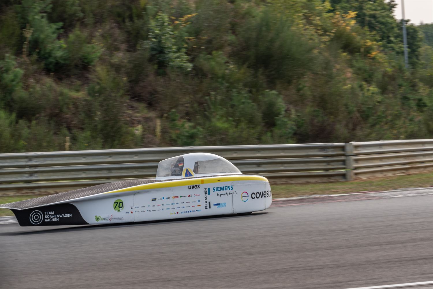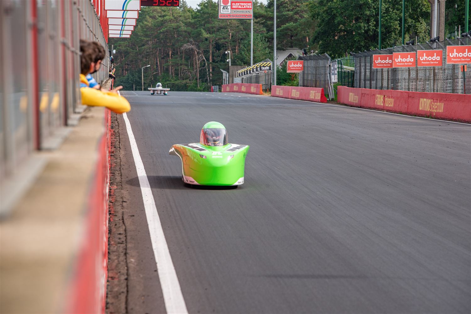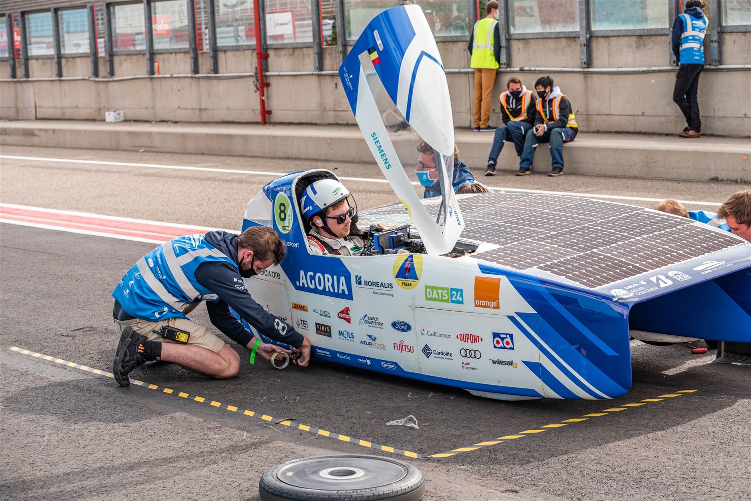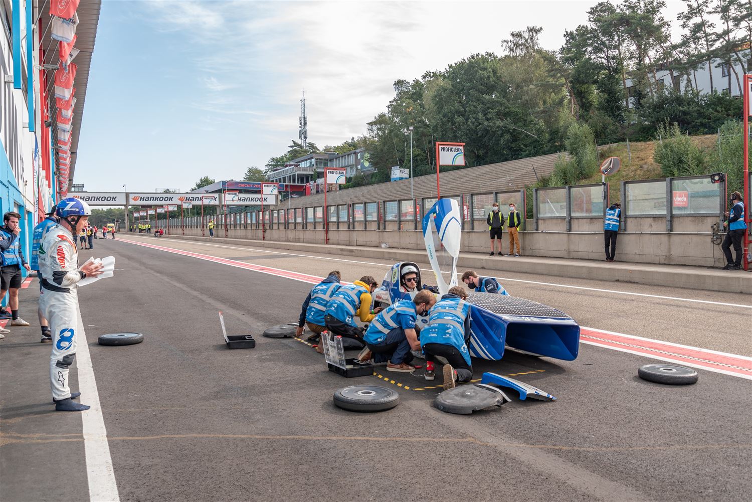 De iLumen European Solar Challenge zit erop. Het Agoria Solar Team is op geen enkel moment bedreigd en heeft op overtuigende wijze de 24 uurs race gewonnen. Bert Longin nam de laatste rondes voor zijn rekening. In het totaal legde de Bluepoint 352 rondes af, dat is afgerond 1408 km. De tweede en derde plaats was voor beide wagens van Solar Team Twente op respectievelijk 39 en 48 rondes. De Punch Two, de tweede wagen van Agoria Solar Team werd vijfde op 63 rondes. (foto's Ann Jordens)