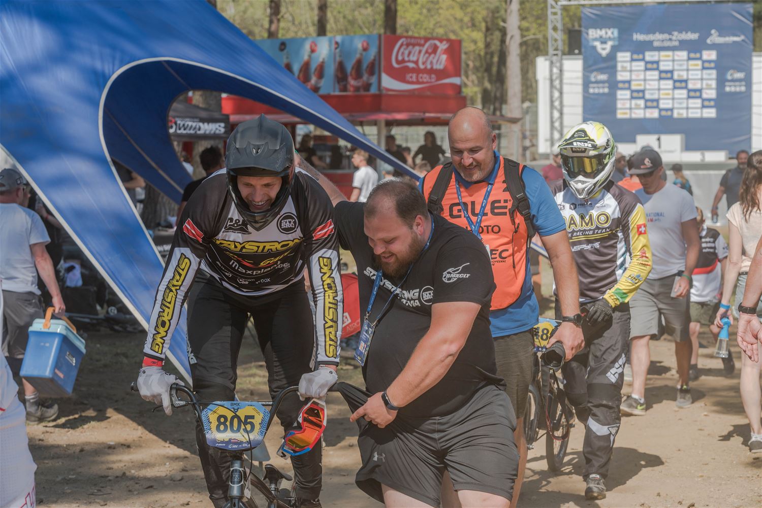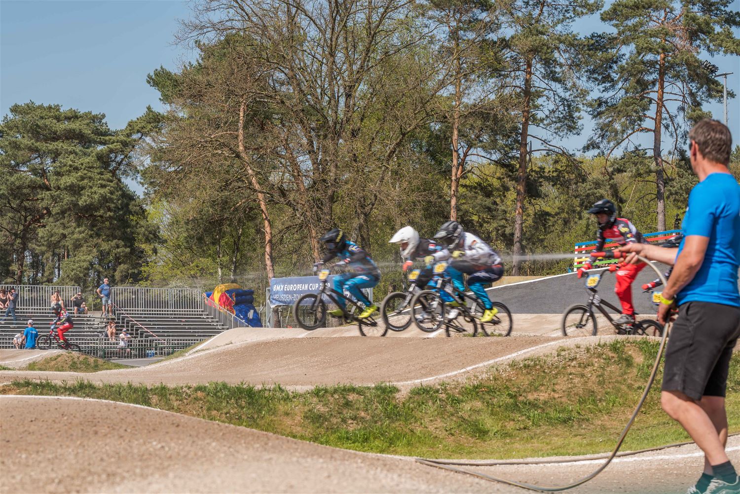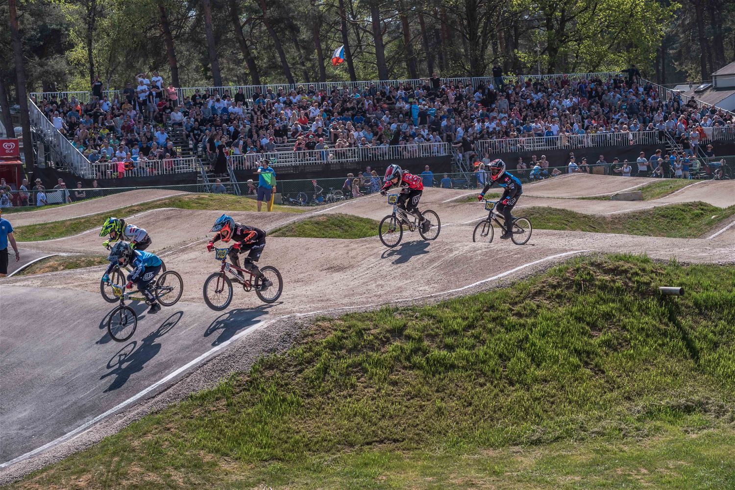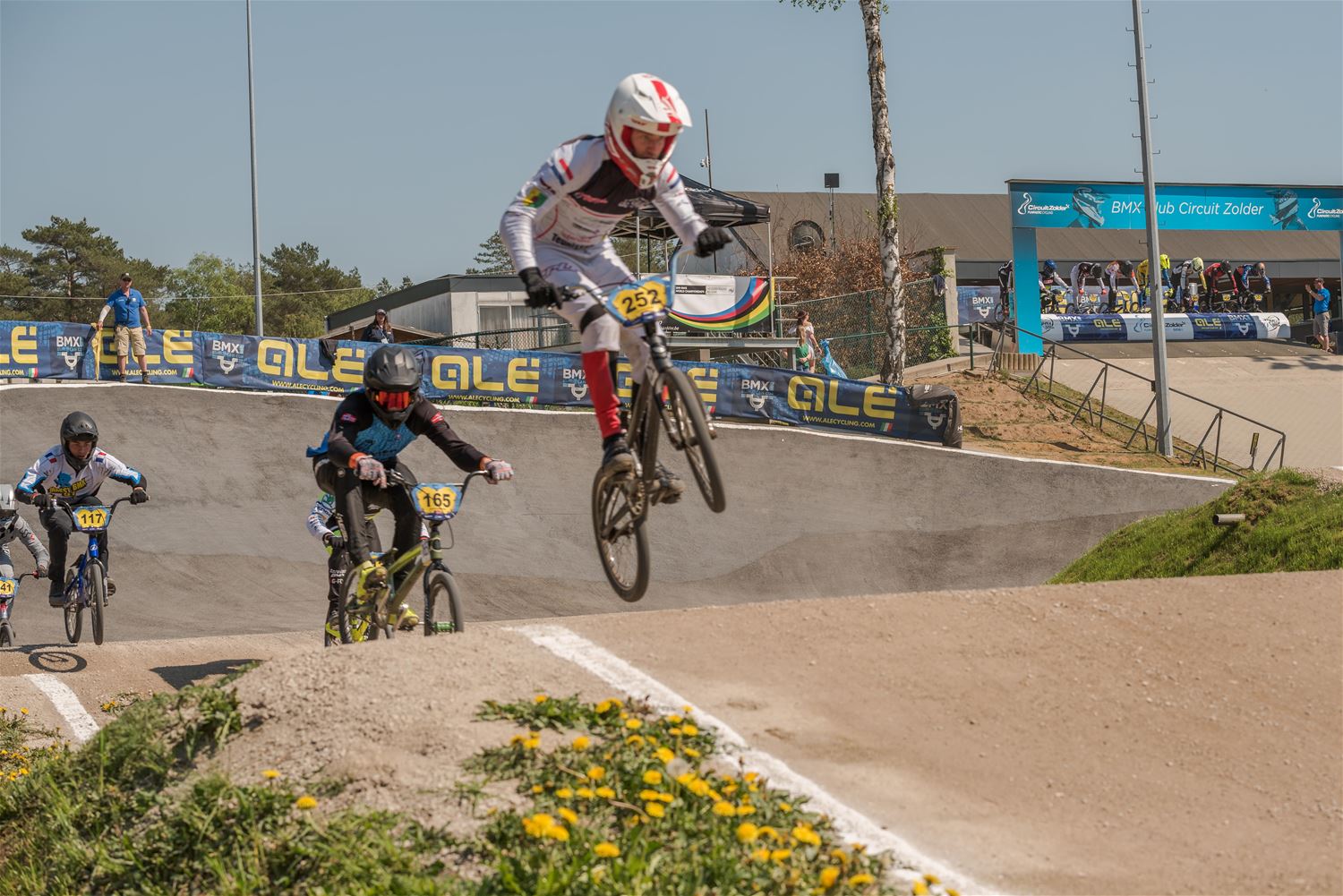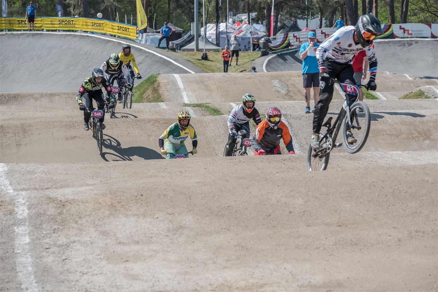Het was warm vandaag en op de BMX-track op Zolder ging het er zelfs ronduit heet aan toe. De deelnemers aan de derde manche van de Europacup BMX gaven elkaar geen duimbreed toe en dat resulteerde in bijzonder spannende en spectaculaire races. Maar naast de piste en achter de schermen werd er verbroederd tussen de 30 nationaliteiten en hing er een toffe internationale sfeer. Bij de Boys 11 was de zege in de finale voor de Est Sten Tristan Raid voor de Belg Jaro Spooren, een andere Belg Lars Bosch was 5de en Unique Everts 8ste. Bij de Boys 12 won de Lithouwer Kristers Appels, de Belg Dries Brouns was 7de. De Lithouwer Edgars Langmanis won bij de Boys 13 voor landgenoot Niels Appermont, Belgen Yeno Vingerhoets, Gianni Terry en Ferre ’t Seyen waren 5de, 6de en 8ste. De Deen Hualte Bechtveld won bij de Boys 14, de Belgen Nathan De Fauw en Kjell De Schepper waren 5de en 7de. De Britse Freia Challis won bij de Girls 11-12, de Belgische Maxime Breugelmans en Sanne Lumbeeck waren 6de en 7de. De zege bij de Girls 13-14 was voor Nederland, voor Lissi Van Schundel. Bij de Cruisers 17-29 ging de beker naar de Fransman Thibault Dupont, Belg Robbe Verschueren eindigde 2de. Het goud bij de Cruisers 30-39 ging naar Frankrijk: Alexandre Monleon, 3 Belgen in de finale: Evan De Luca op 3, Michael Besonhe op 6 en Gorden Martin op 8. Het goud bij de Cruisers 40-44 was voor de Nederlander Junny Brejita. Ook een Nederlandse zege bij de Cruisers 45+, die was voor Bob Van Westerop, onze landgenoot Sammy Deschepper was 7de. Het goud bij de Men 25+ ging naar Groot-Brittannië, naar Callum Strickland, Michael Bogaerts strandde op de 3de plaats. Een volledig Nederlands podium bij de Women Cruisers met als winnares Soraya Van Hees, de Belgische Britt Baetens viel net naast het podium met haar 4de plaats. Bij de Women 17+ tenslotte won de Slovaakse Kristina Madarasova,, ook daar was de Nederlandse aanwezigheid in de finale bijzonder sterk. (foto’s Ann Jordens)45537