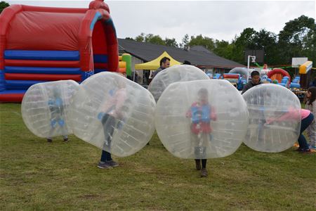 De weergoden waren niet echt in the mood voor Boekt Feest want ze lieten vanmiddag een stevige bries en af en toe wat regen overkomen. En dat is bijzonder jammer voor de organisatoren die na de eerste twee dagen vol sport en muziek alle registers hadden opengetrokken om er een prachtige familiedag van te maken. Gelukkig lieten de Boektenaren zich niet door het sombere weer afschrikken en ze kwamen met velen naar de Ubbelvelden afgezakt. Tussendoor konden ze ook in de ruime tent terecht waar een clown de kinderen leuk kon entertainen. Buiten konden de kids kiezen uit een waaier van springkastelen, sport en spel en animatie aangepast aan verschillende leeftijden. Met tussendoor een ijsje of wat hartigers, terwijl papa' s en mama's de weg naar de bar vonden. (meer foto's)26303