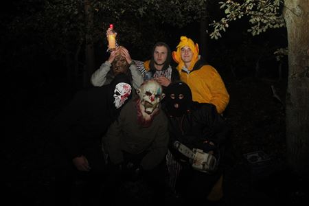 Tussen het voetballen door durven ze bij Bolderberg FC ook al eens iets anders ondernemen. Een Halloweentocht bijvoorbeeld. En dus trokken gisteravond oud en jong op pad om zich de stuipen op het lijf te laten jagen, of te genieten van de kunsten van een vuurspuwer. (foto's Yves Maex)43551
