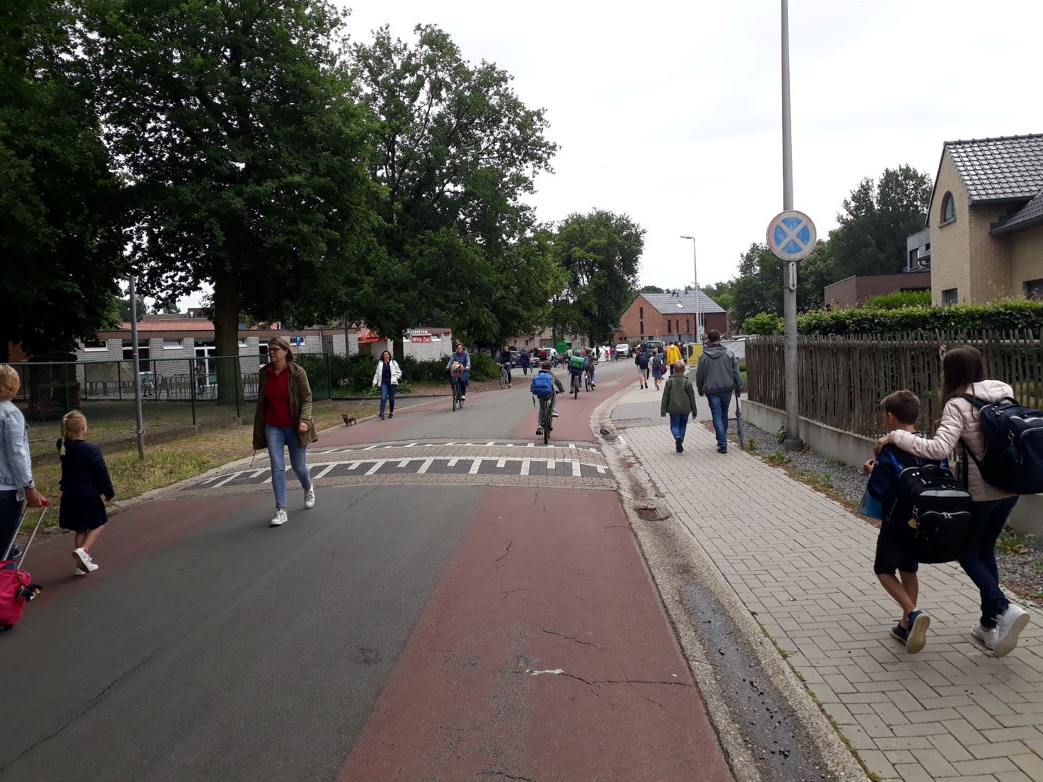 Dus wordt van 15 uur tot 15.30 uur en op woensdag van 12 uur tot 12.30 uur aan de ouders gevraagd niet verder te rijden dan de grasparking . Alleen bewoners mogen met de wagen stapvoets voorbij de bewaakte afsluiting rijden tot aan hun huis en ze kunnen weer weg via de Lambert Hoelenstraat. Het resultaat is een veilige voetgangers- en fietszone, die rekent op de burgerzin, met meer dan voldoende ruimte om de onderlinge afstand te bewaren. Een eerste evaluatie toonde aan dat er, ondanks het regenachtige weer, meer fietsers de woon-schoolverplaatsing maakten. In de schoolstraat ontstonden meer (veilige) sociale contacten tussen ouders. De Fietsersbond Heusden-Zolder is ervan overtuigd dat het concept schoolstraat ook aan andere schoolpoorten kan toegepast worden en zal dat stimuleren.