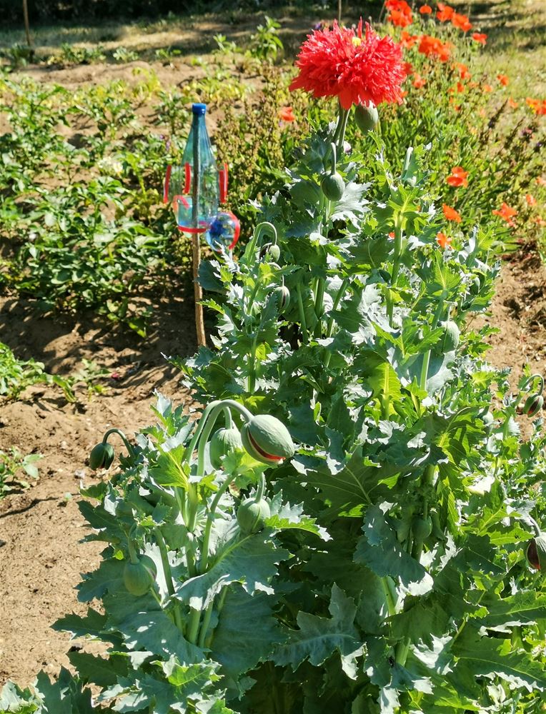 Frans Morawski heeft - ergens in Heusden- een slaapbol of bolpapaver in bloei bespeurd. De plant wordt ongeveer een meter hoog. Vooral in Afghanistan wordt die massaal geteeld omdat het melksap ongveer 10 % opium bevat. Kijk binnenkort iedereen maar eens diep in de ogen, we zullen zien wie door de mand valt.55052