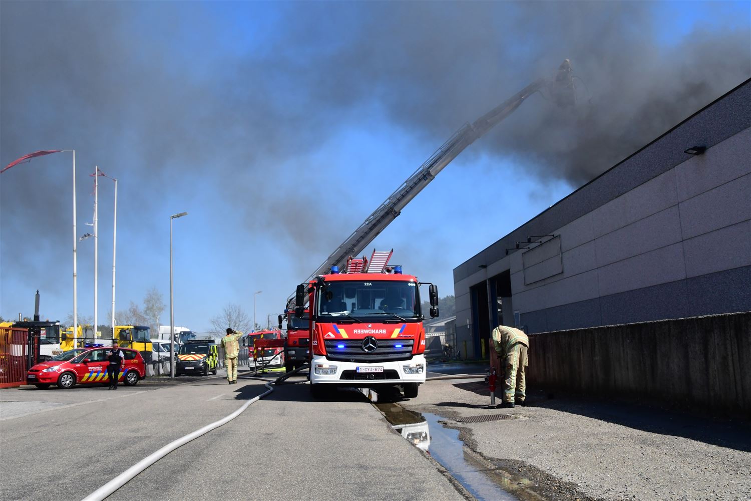 In de vroege namiddag heeft het gebrand in een bedrijfshal in de Kapelstraat, langs de werkplaatsen van de gemeente. Kort voor 14 uur zagen voorbijgangers rook uit het gebouw komen en ze verwittigden de brandweer. Toen die even later met 6 voertuigen ter plaatse kwam, hing er al een dikke zwarte rookwolk boven het bedrijf. Toen sloegen ook de vlammen door het dak. De brandweer viel het vuur langs verschillende zijden aan, en bestreed het vuur ook van bovenuit. (foto's Michiel Reynders)