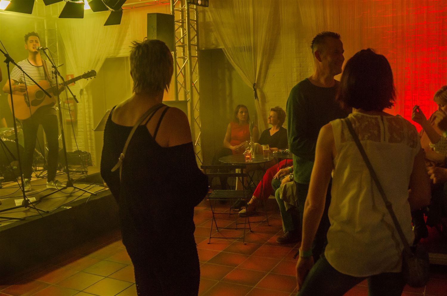 Veel volk zaterdagavond in Muze voor de festivalversie van Bravo Boulevard. De toeschouwers werden getrakteerd op pop, rock, covers, ... Het muzikale gebeuren verplaatste zich heel de tijd van balzaal naar foyer zodat de sfeer geen moment hoefde weg te vallen. En nadien gaf de dj er nog tot in de vroege uurtjes een lap op. Zondagnamiddag is er nog een tweede uitvoering van Bravo Boulevard in Symphonie. (foto's Ann Jordens)45314
