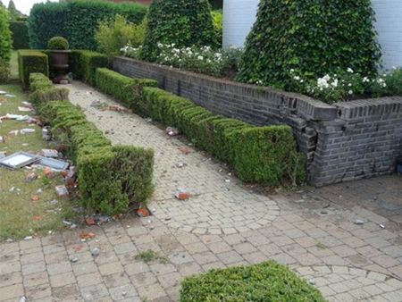 Brievenbus aan diggelen, tuinmuur stuk