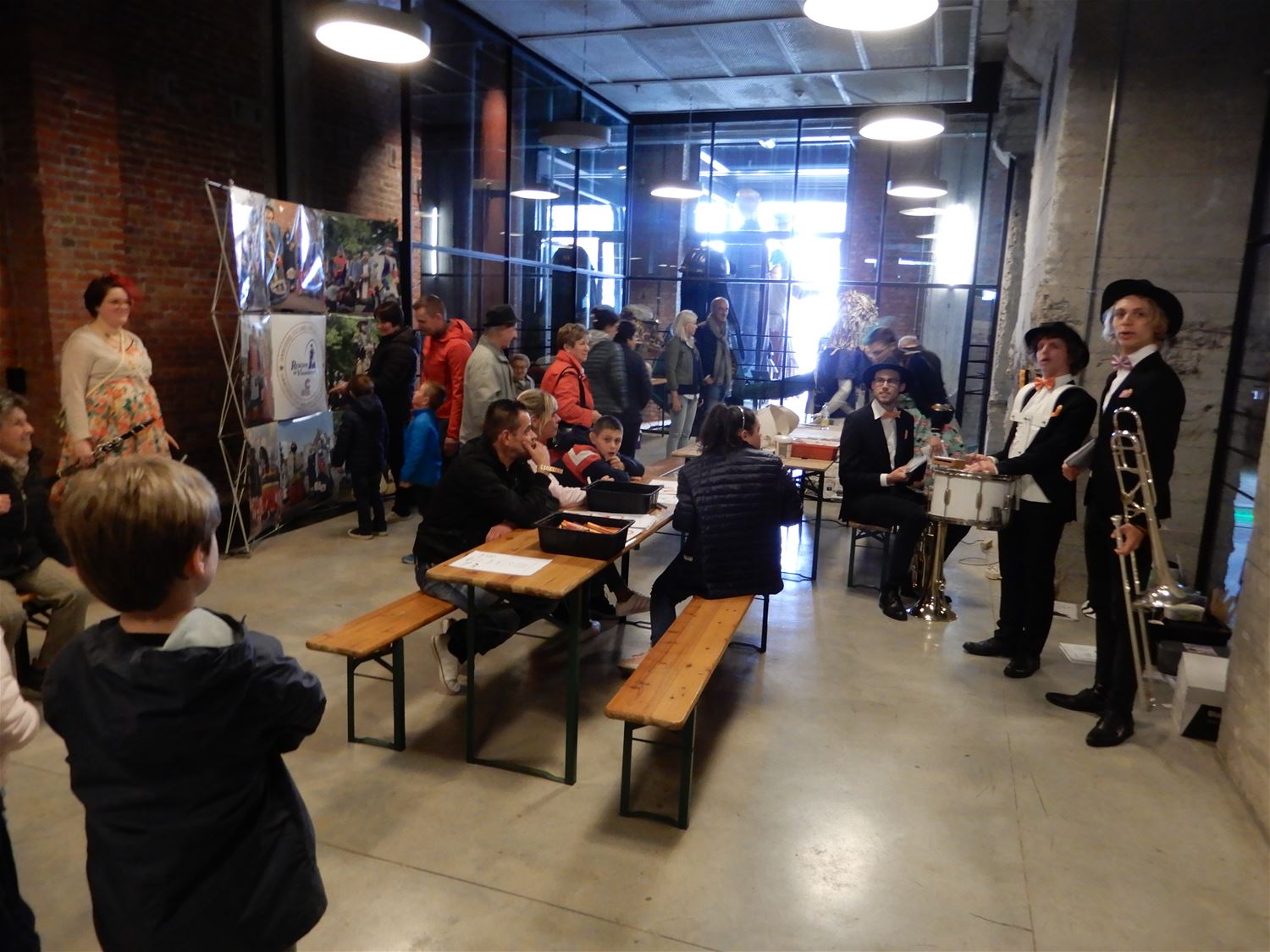 De buitenactiviteiten op Mijn-Kracht hadden ook vandaag duidelijk te lijden onder het wisselvallige weer. Binnen daarentegen was er veel belangstelling onder meer van mensen die graag een glimp van de toekomstige Muze wilden opvangen. En ook de reuzen workshops kregen zowat 700 belangstellenden op bezoek, daarbij heel wat sympathisanten voor de Greta Thunberg-afgeleide … De fanfare zorgde voor de sfeer. (foto’s Julien Maebe)46627