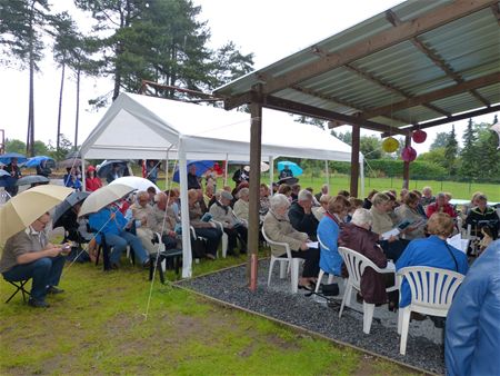 Zowat 100 buurtbewoners van de Sint-Janskapel hebben gisteravond de Sint-Jansmis bijgewoond ter opening van de kermis. De pas geschilderde kapel werd opengesteld voor het publiek. Maar door het slechte weer moest de mis worden opgedragen onder het afdak en een tent bij De Sluis. Al even traditioneel werd de viering afgesloten met wijn, cake en een gezellige babbel. (foto's Danny Lucas)16493