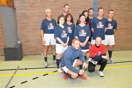 Sporthal Olympia was woensdagavond meer dan vol gelopen voor de zaalvoetbalbenefiet van de politie tegen een BV-ploeg Ook de jeugdvoetbalploegen - die het voorprogramma verzorgden - hadden een hele aanhang meegetroond. Ook een indrukwekkende lijst BV's was naar hier afgezakt. Ambiance genoeg in de zaal door de begeesterde speaker, de opzwepende muziek, het orkestje en de kerstmeisjes die het publiek bedolven onder de cadeautjes. Na de uitgebreide ploegenvoorstelling, ging de partij wat aarzelend van start, beide teams leken bang om de keepers te hard onder vuur te nemen. Na bijna zeven minuten maakte één van de Philippaerts-broers - die van de jumping de openingsgoal. Aan de overzijde stond Davino Verhulst als een blok graniet voor zijn doel, pas toen de kolos Odell Hodge hem verving - en na vijf minuten zijn handschoenen nog niet aanhad - werd het 1-1, kort daarop mocht zonechef Geert Luypaert de flikkenscore verdubbelen, hij was er trouwens op gebrand de dubbele 0 die hij als rugnummer droeg geen symboliek toe te kennen. Op een aantal momenten was het politiedoel een schietkraam, maar keeper Herman Thiels ranselde zowat alles uit zijn doel. Rik Ceulemans had de gelijkmaker gemarkeerd en Olivier Philippaerts zorgde voor 2-3 rustscore. Na de rust liepen de BV's uit tot 3-6, sportschepen Mario Borremans nam het lokale doelpunt voor zijn rekening, en nog werd het spannend want de politie kwam terug tot 5-6, Jacky Peeters maakte er met een prachtige bal 5-7 van, Luypaert prikte zijn derde tegen de touwen, maar de Philipaertsen legden de 6-8 eindstand vas, en dat op een ogenblik dat alle spelers tegelijk het terrein opmochten, chaos alom dus. Heel wat belangrijker dan de uitslag, is evenwel de fikse opbrengst voor een aantal plaatselijke gezinnen in nood. Meer foto's van Dimitri Reynders