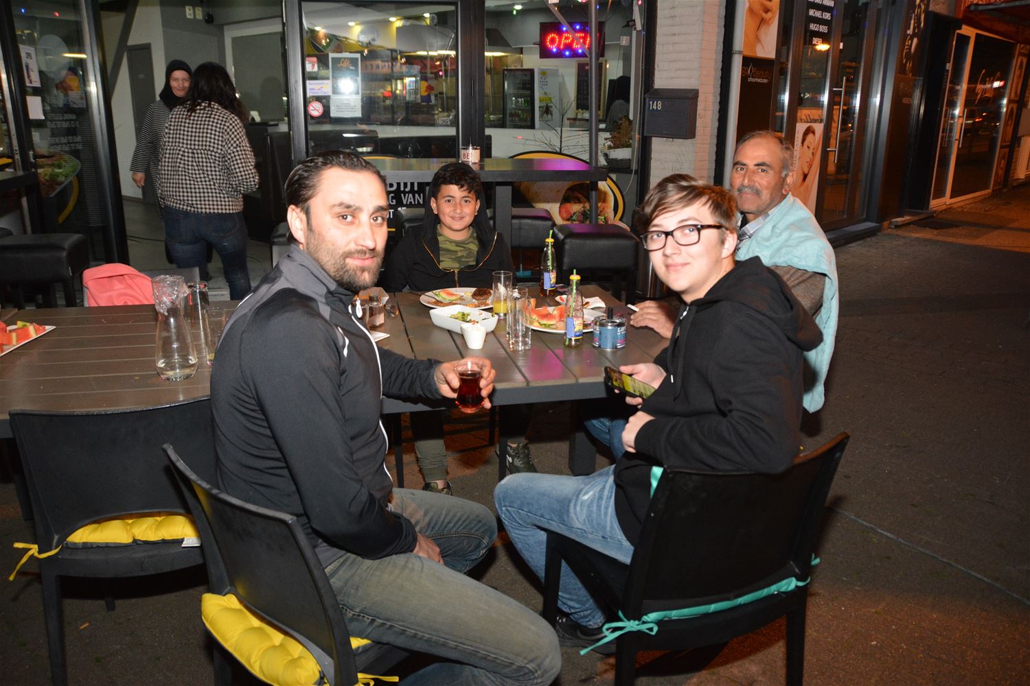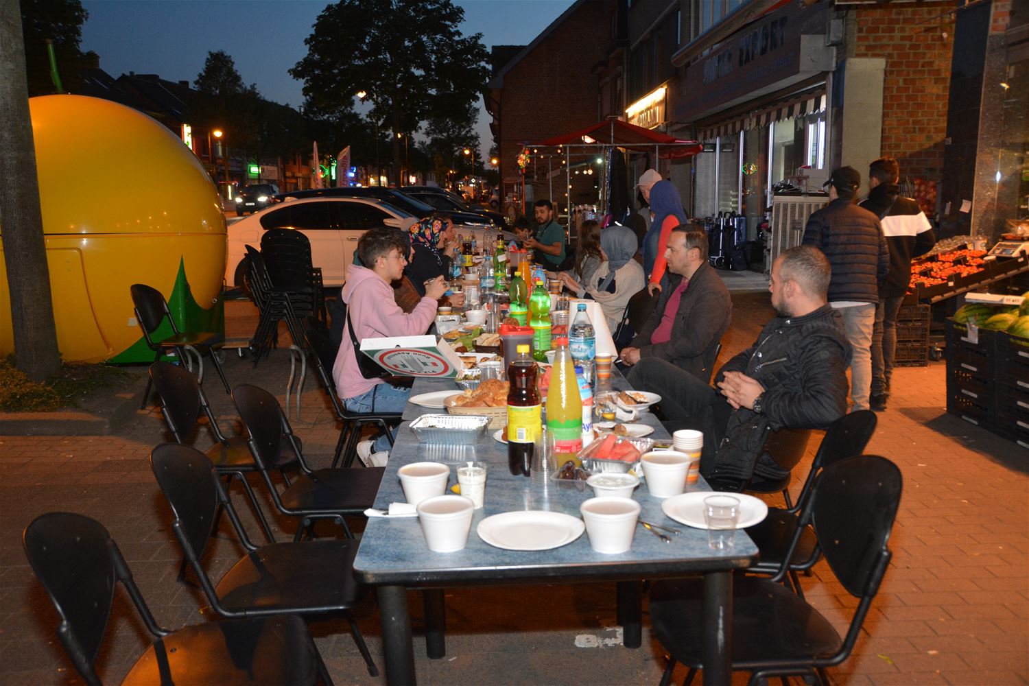 De eerste editie van ‘Cité by Night’ die handelaarsvereniging Cité vrijdagavond organiseerde, heeft een rustige start genomen. De grillen stonden gloeiend, het vlees lag te braden, salades werden geserveerd, fruitsap geperst, … Enkele horecazaken, die anders ook al druk bezocht worden, zaten vol. Toen het helemaal donker werd en thuis de eerste honger was gestild, kwam het volk meer en meer naar buiten gesijpeld.46896