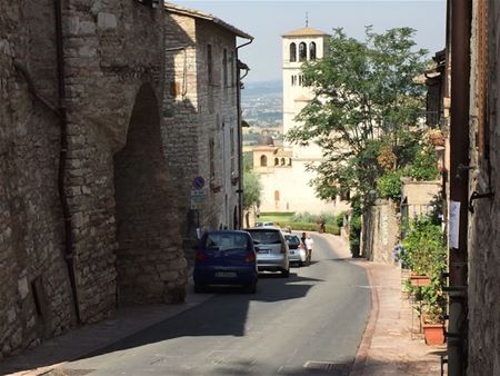 Het zit erop: na een fietstocht van 1900 km zijn de broers Coels aangekomen in Assisi. De laatste loodjes zijn vaak het zwaarst: zo bleek de lange afdaling naar Sansepolcro er uiterst gevaarlijk bij te liggen met gaten, scheuren en bulten in het wegdek. En dat nog allemaal als gevolg van de aardbeving van augustus vorig jaar. Maar de basiliek en het stadje liggen er nog mooi bij en die aanblik was de ultieme beloning voor de moedige fietsers.34924