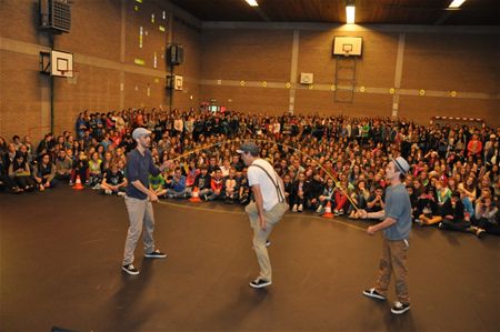 In het Sint-Franciscuscollege werd vandaag de vakantie ingezet met de traditionele Bye Bye School Party. Door het mindere weer werd een groot deel van het programma in de sporthal afgewerkt, met optredens van leerlingen, leerkrachten en de leerkrachten L.O., ropeskippers, dj's onder wie Zohra en de huldiging van de sportkampioenen. De apotheose werd het gel-gevecht waarbij op de speelplaats de directie 'onder vuur' werd genomen. Om 12 uur volgde het aftellen en met enkele knallen werd de vakantie ingeluid. (meer foto's van Marina Poelmans)13459