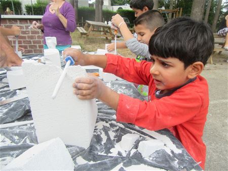 Ook vandaag weer veel creativiteit op de vierde dag van het mensenrechtenproject in het Rode Kruisopvangcentrum Heusden-Zolder. De deelnemers lieten zich uitdagen door ... jawel ytongblokken. Zoveel meer dan gewoon bouwmateriaal uit een kluswinkel. De panelen kregen intussen een eerste laagje. De resultaten zijn te zien tijdens het mensenrechtenfeest op 5 augustus. (meer foto's)28150
