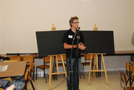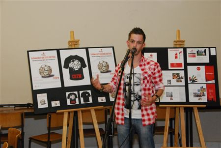 Eén van de blikvangers tijdens de opendeurdag van het CVO vanavond was de voorstelling van een eindwerk van de opleiding grafisch ontwerp/webdesign. Ze waren aan de slag gegaan voor het Rode Kruis Heusden-Zolder om een soort imagocampagne te ontwikkelen. Meer concreet ontwierp Kim Roelands een flyer om 16-17-jarigen warm te maken voor een cursus en daarna eventueel de hulpdienst te versterken. Daarnaast moesten ze een nieuwe vlag ontwikkelen en een logo voor Steunpunt. Yves Emmers ontwikkelde de promotiecampagne voor de benefietzaalvoetbalmatch tussen de lokale hulpdiensten en bekende Vlamingen. Daarvoor ontwierpen ze een affiche, een flyer en de toegangskaarten. Van het Rode Kruis kregen de cursisten alvast enthousiaste reacties. (foto's Dimitri Reynders) 13855