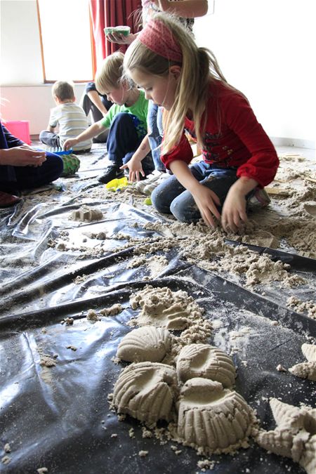 Er is heel wat te doen voor kinderen en kleuters deze paasvakantie. Zo verzamelden ze gisteren in Muze voor een dagje 'water- en zandplezier'. 4- tot 6-jarigen konden er spelen, dansen en knutselen. (foto Rudi Coomans)7366