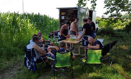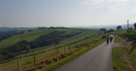 9 dappere fietsers en 2 begeleiders uit Heusden-Centrum zijn weer begonnen aan hun tweejaarlijkse odyssee over zuiderse bergen en dalen. Deze keer gaat het traject van Biarritz naar Barcelona, dwars door de Pyreneeën. Een tocht van 830 km met onderweg legendarische namen als de Tourmalet, Col de Marie-Blanque, Col d’ Aubisque, Col d’Aspin, Col de Peyresourde, Col de Portet d’Aspet… Tijdens de eerste rit vandaag was het al echt puffen met temperaturen tot 35 graden, en ook een eerste col: de Marie-Blanque met de laatste 4 kilometers constant 10 tot 14 % hellingsgraad. Iedereen overleefde de162 km en ligt nu te rusten om klaar te zijn voor de koninginnenrit van morgen. Begeleiders 'Paktis' en 'Giftis' rijden de hele rit met een bestelwagen en zorgen voor catering en logistiek.22333