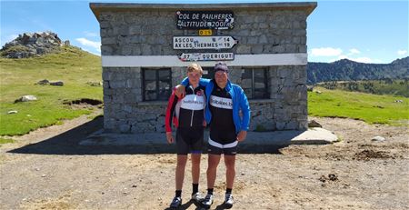 De Heusdense fietsers die onderweg zijn van Biarritz naar Barcelona hebben vandaag eindelijk nog eens kunnen genieten van de zon en daardoor ook ook van de natuur. Arie was ziek en moest daardoor de rit in de bestelwagen maken. In de voormiddag stond de beklimming van de 'Pas de Souloumbrie' op het programma: 9 km lang en 911 m hoog, een peulscheul zou je denken maar niet met de zware benen na de voorbije dagen. Later volgde de zware klim van de 'Port de Pailhères', 18,9 km en iets over de 2000 meter met een gemiddelde stijging van 6,8 %. Gelukkig stonden onderweg Paktis en Giftis klaar met een lunch. Door naar boven, daarna afdalen en richting hotel ... dat echter ook op de klim naar de 'Col de la Quillane' ligt. Het pintje smaakte dus eens zo goed. Maandag rijdt het gezelschap Spanje binnen.22375