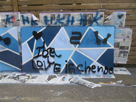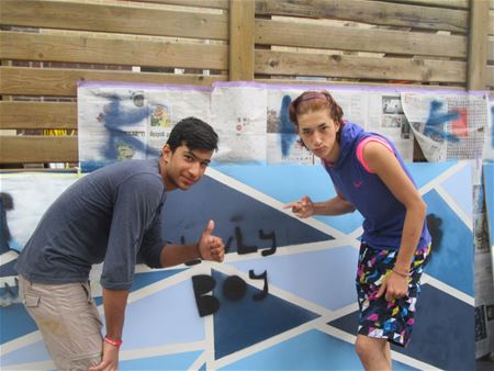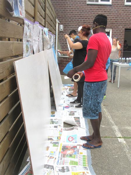Tijdens 'A road to somewhere' in De Bark werd vandaag gewerkt rond verf. Zo stonden graffiti centraal maar ook andere verftechnieken waarmee geëxperimenteerd werd. De deelnemers hadden aan het eind van de dag het gevoel dat ze nog wel een tijdje door konden hiermee. (meer foto's)28159