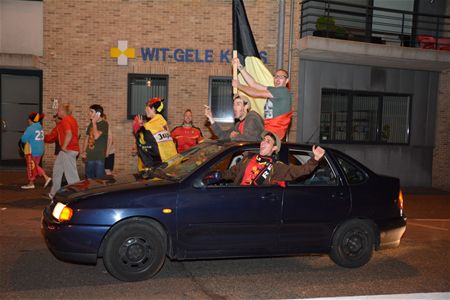 Meteen na de Belgische overwinning tegen de Verenigde Staten, barstte het feest opnieuw los in Heusden-Zolder. En zoals dat de voorbije week ook al het geval is, is de rotonde aan de kerk in Heusden zowat het centrale punt geworden. Daar stromen de meeste supporters zingend en springend samen en daar blokkeren toeterende auto's alles. Het gevolg zijn files - van supporters uiteraard - in de Guido Gezellelaan, Brugstraat en Koerselsebaan. Overigens waren de supporters duidelijk nog talrijker dan na de wedstrijd tegen Zuid-Korea. (meer foto's)