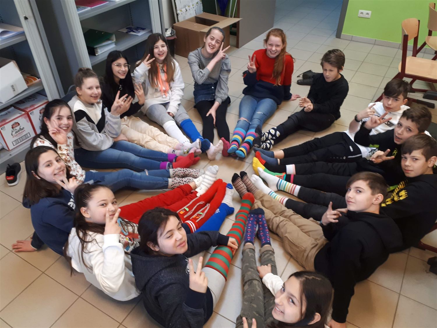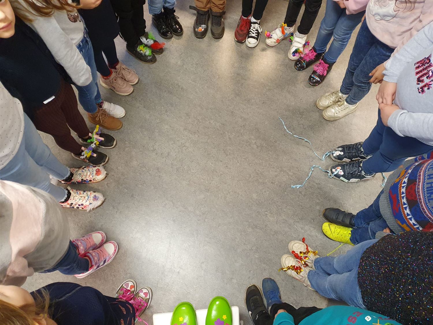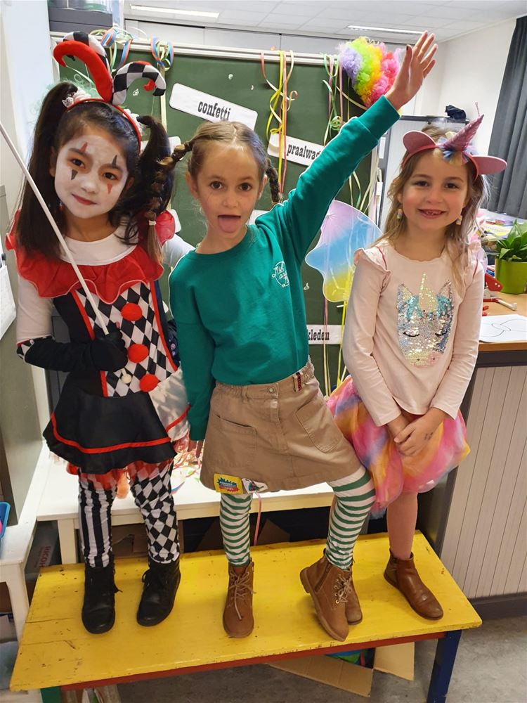 In De Brug vierden de leerlingen eigenlijk een hele week carnaval. De ene dag stond in het teken van gekke schoenen, de andere in die van de gekke sokken, dan volgden haren en hoeden tot gekke kleren. En vandaag werd afgesloten met een carnavalsfeest vol dans en plezier. 51826