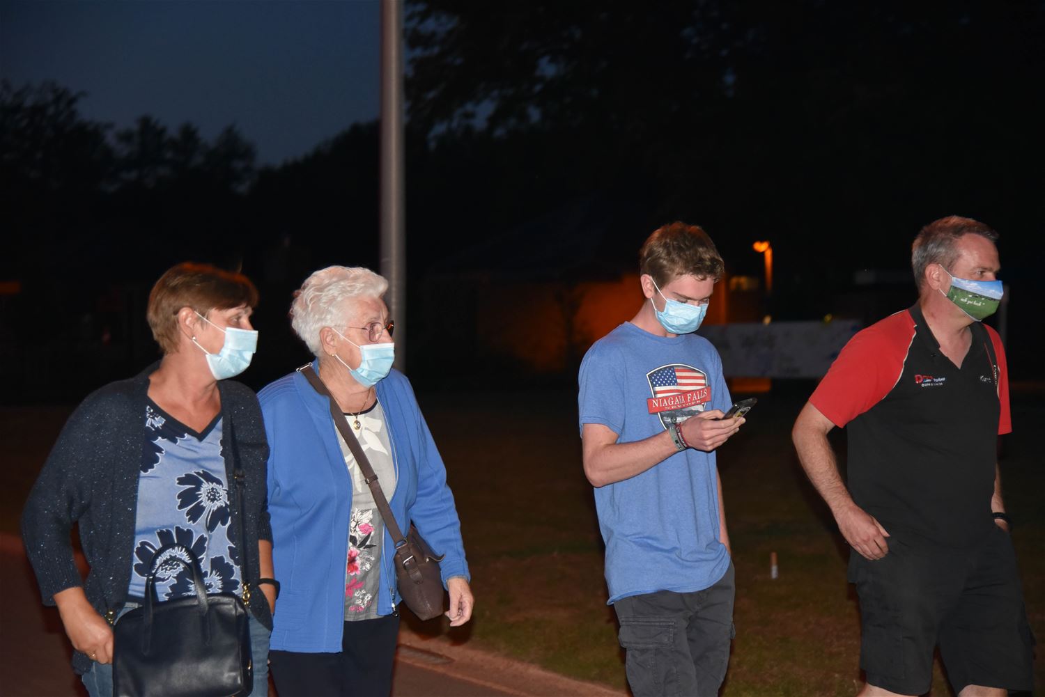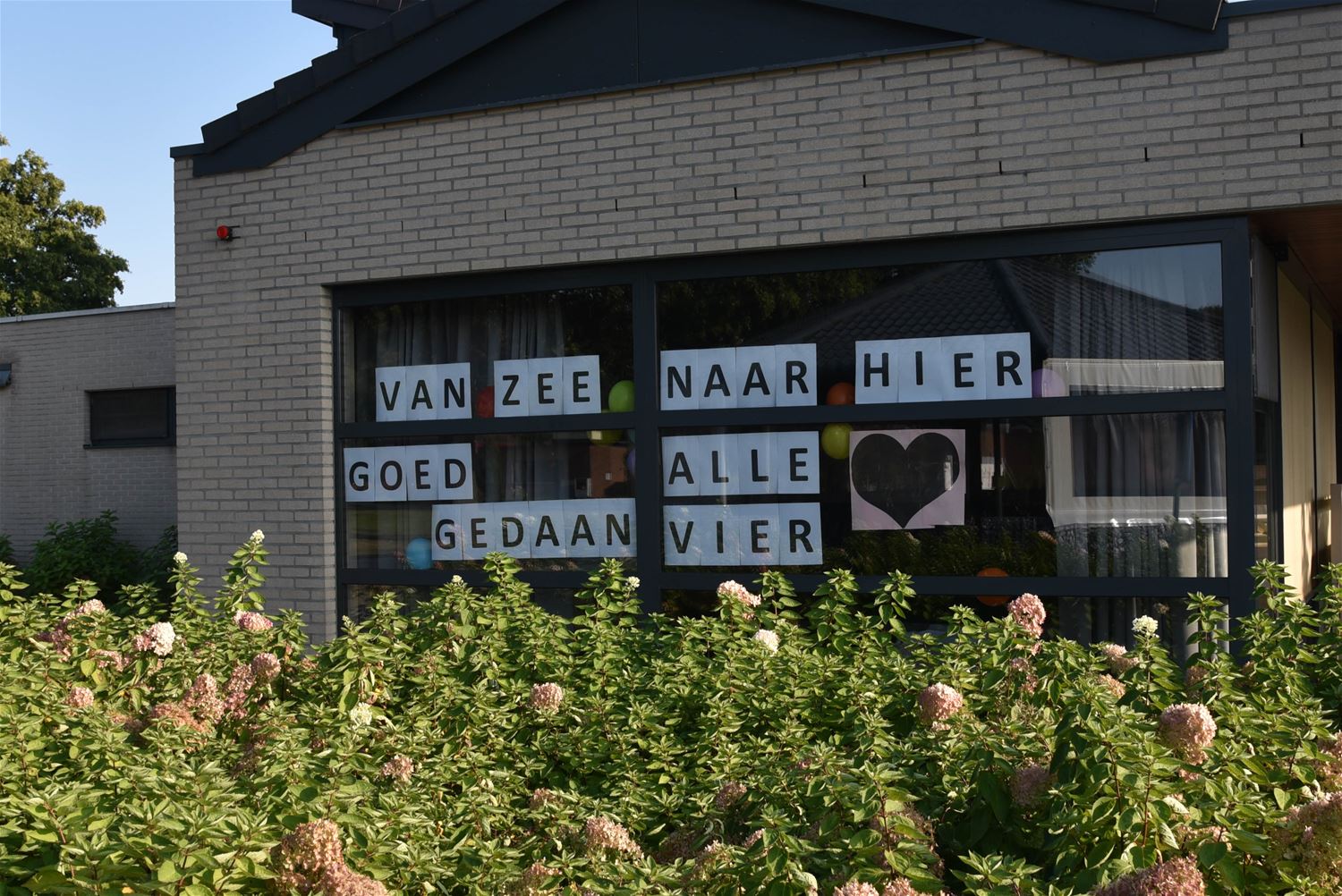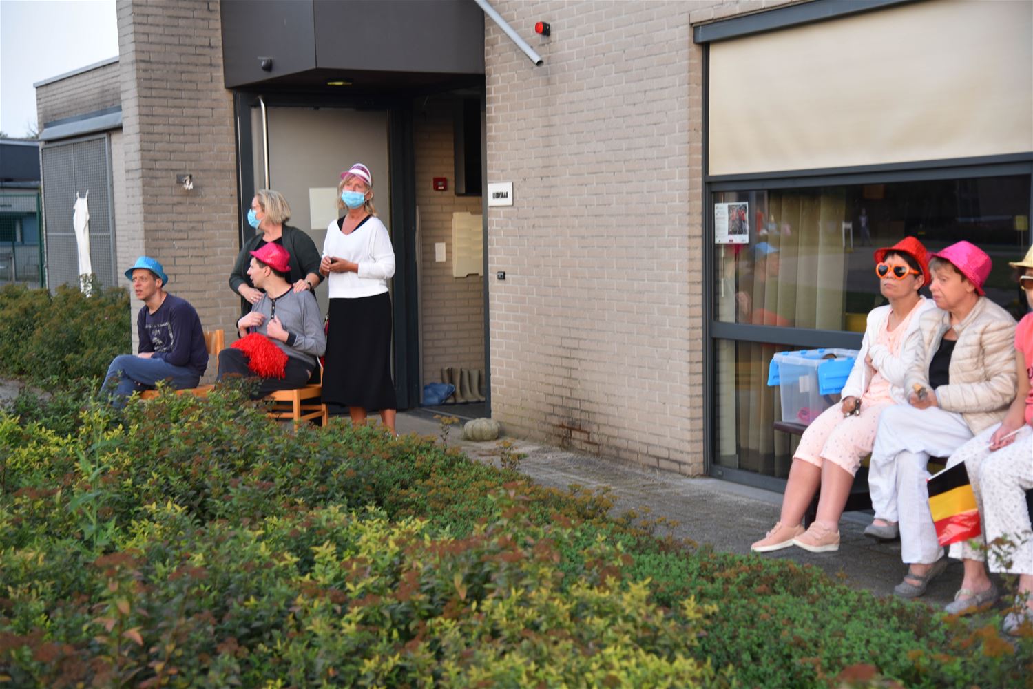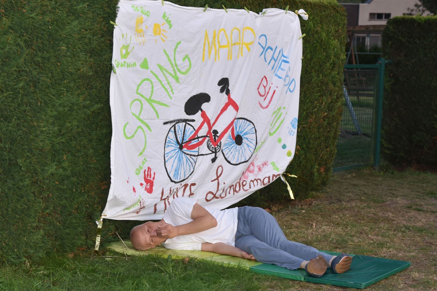 Feest aan 't Weyerke vanavond want de vier dappere fietsers hebben het gehaald. Nog voor het krieken van de ochtend waren ze met hun duofietsen vertrokken in Blankenberge. Hun odyssee onderweg werd op het thuisfront gevolgd en becommentarieerd via Radio Weyerke. De zorggebruikers, collega's en sympathisanten waren - uiteraard beperkt - opgedaagd om hen vanvond te verwelkomen te spandoeken. En na exact 198 km, 15 uur en 25 minuten fietsen kwamen Gwendoline, Saartje, Charlotte en Hanneze om 20.15 het domein opgereden, luid toegejuicht maar doodmoe. Overigens zijn sponsors nog altijd welkom om die rolstoelfiets te kunnen aankopen. (foto's David Amgad)62042